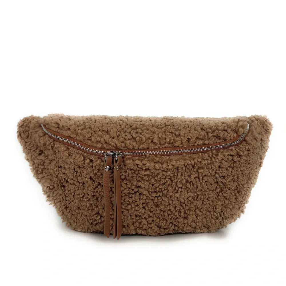Sac banane géant en cuir et peluche LOU PILOU XXL Camel