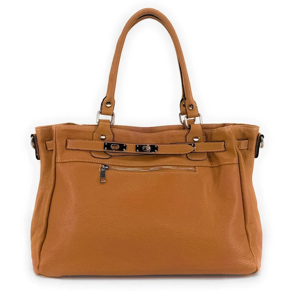 Sac cabas en cuir grainé JANET SILVER Camel clair