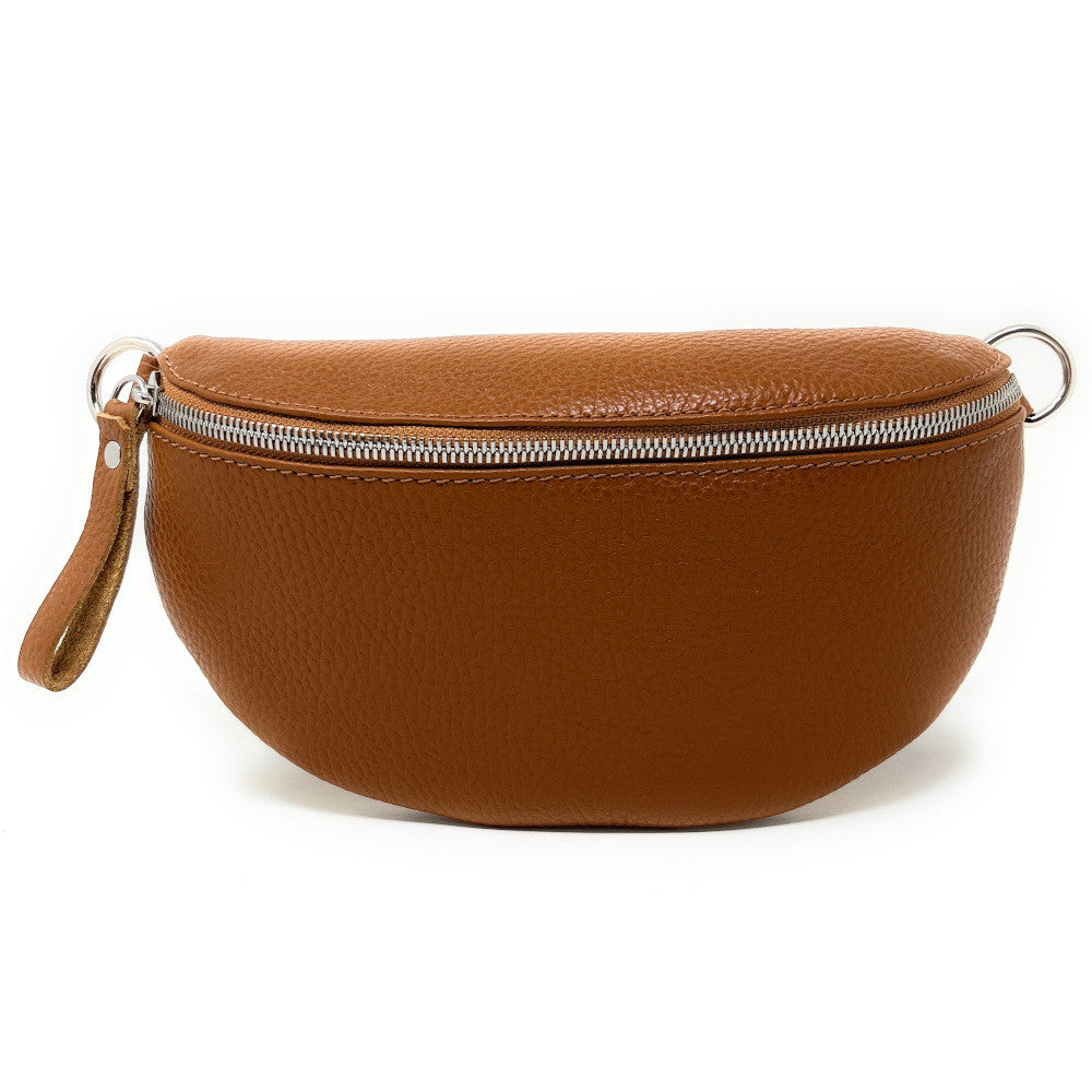 Sac banane en cuir grainé LOU-ANN Cognac