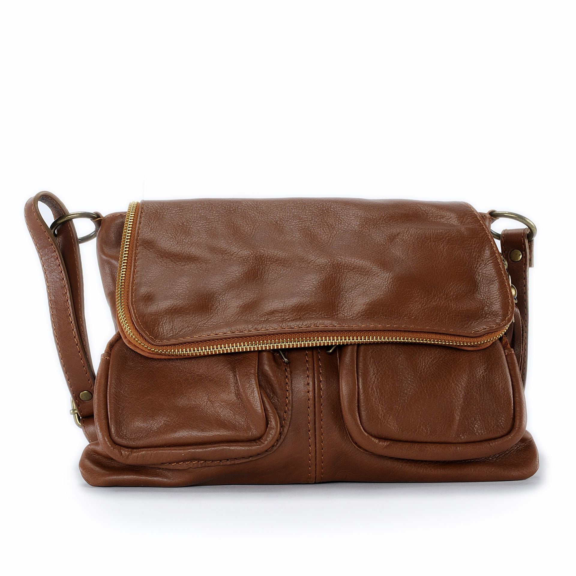 Sac besace en cuir vintage MISS BAYE Cognac