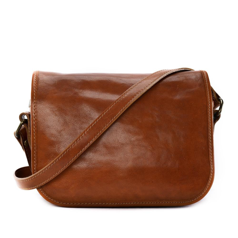 Sac besace à bandoulière en cuir vintage MISS COQUETTE Cognac