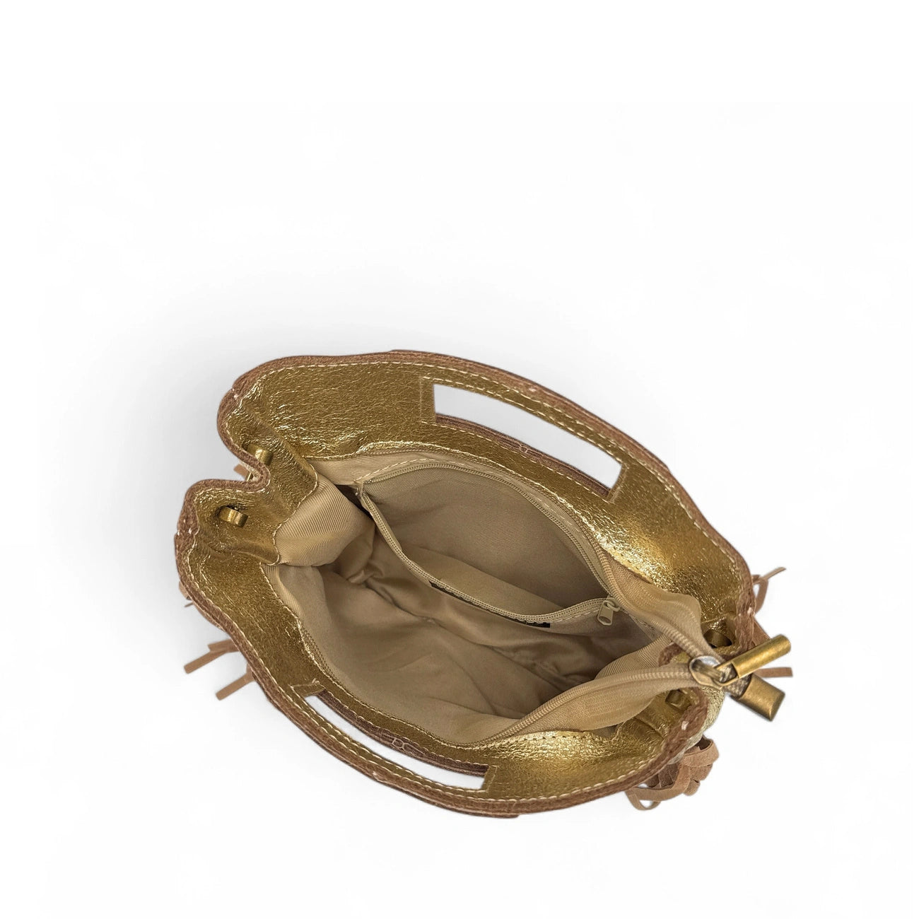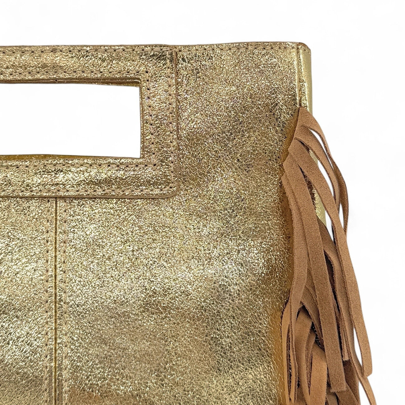 | Denomination | Bag main leather fringe irisé and suede ENOLA Pale gold |