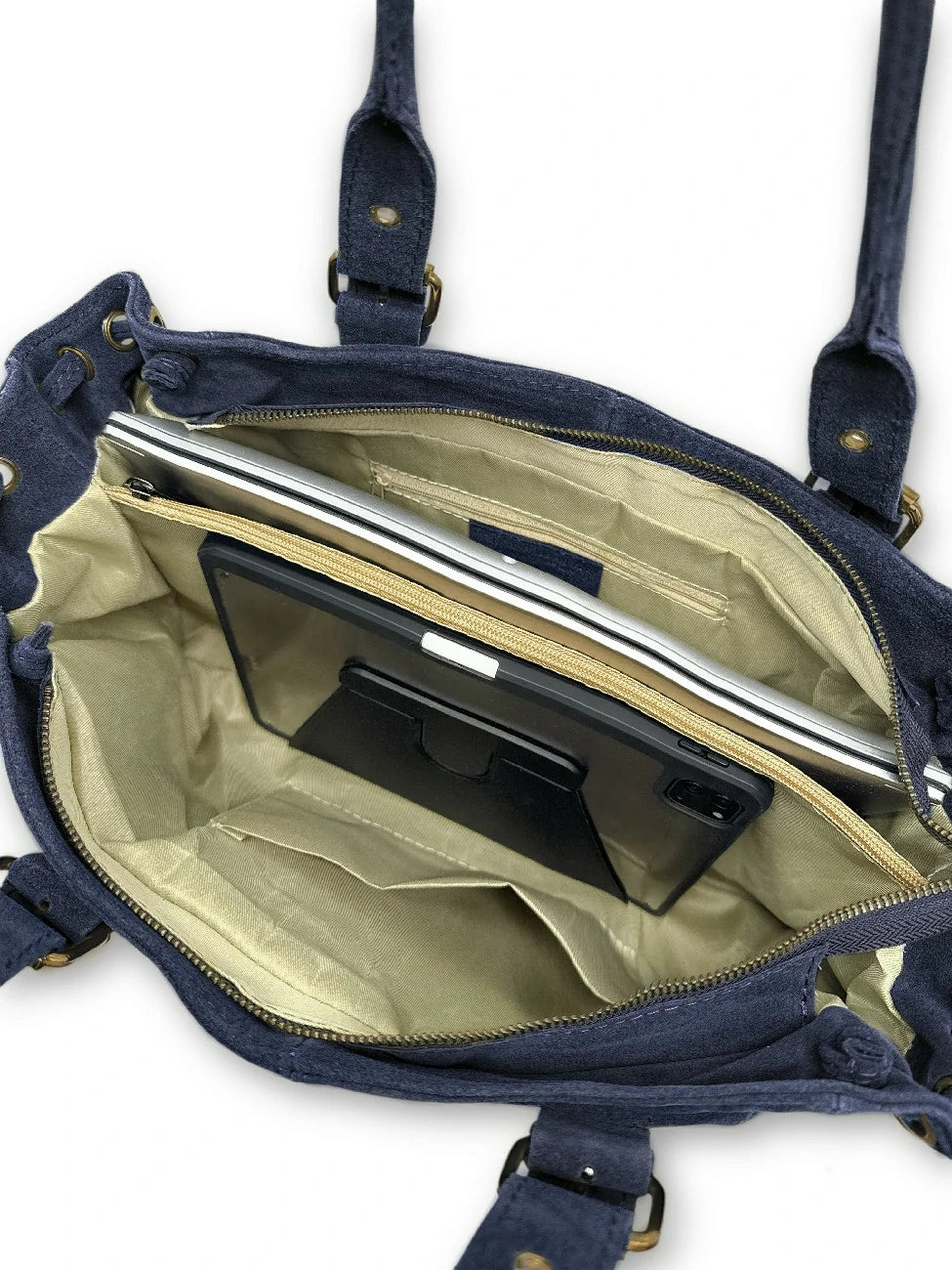 Acclaimed, the multimedia version of the best seller PRINCESSE Finally is available: contrasting stitching and velvety leather crust is expanded in A4 format for a studious version of our most glamorous shoulder bag of the season. Its worn is always comfortable, even with a coat, thanks to the adjustable rollers extended to compensate for the increase in volume. It retains its practical interior fittings, including its zipped central compartment, as well as its many pockets! We love its look couture combined with a functionality concentrate: the organization is perfect, and a computer will easily stay there thanks to the sliding links on each side of the bag to main. The golden fittings still accentuate his refined style: who said that one could not be glam 'chic At the office?