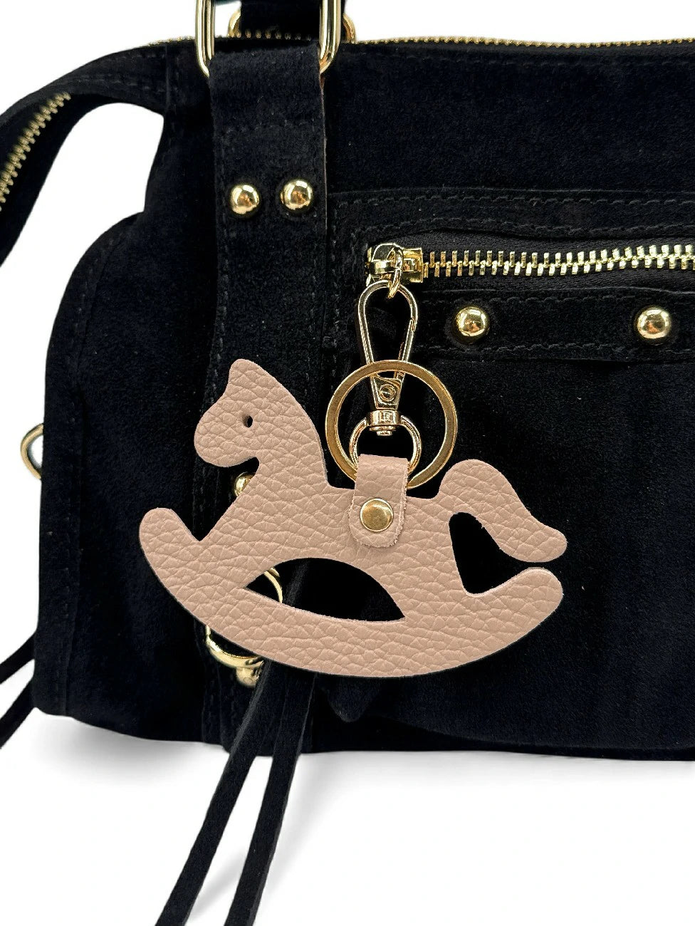 Grained leather punctuated by a delicate golden rivet dresses this keychain evoking a rocking horse. Bank of bag with a tender and poetic pattern, its varied colors will play the contrasts or the tone tone, according to your desires. His neat finishes give him a lot of appearance: he will come to adorn your bag main elegantly!
