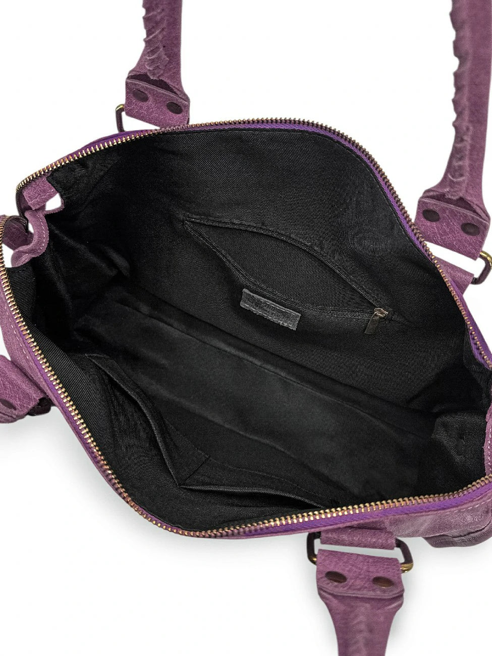 Utiliza los gestos adecuados con los productos correctos según el tipo de cuero (más detalles). No transportes productos pesados que puedan deformar el bolso. Almacenamiento: Guarda el bolso en su funda, relleno con papel de seda para conservar su forma si es necesario. Mantenlo alejado de fuentes de calor y polvo.
