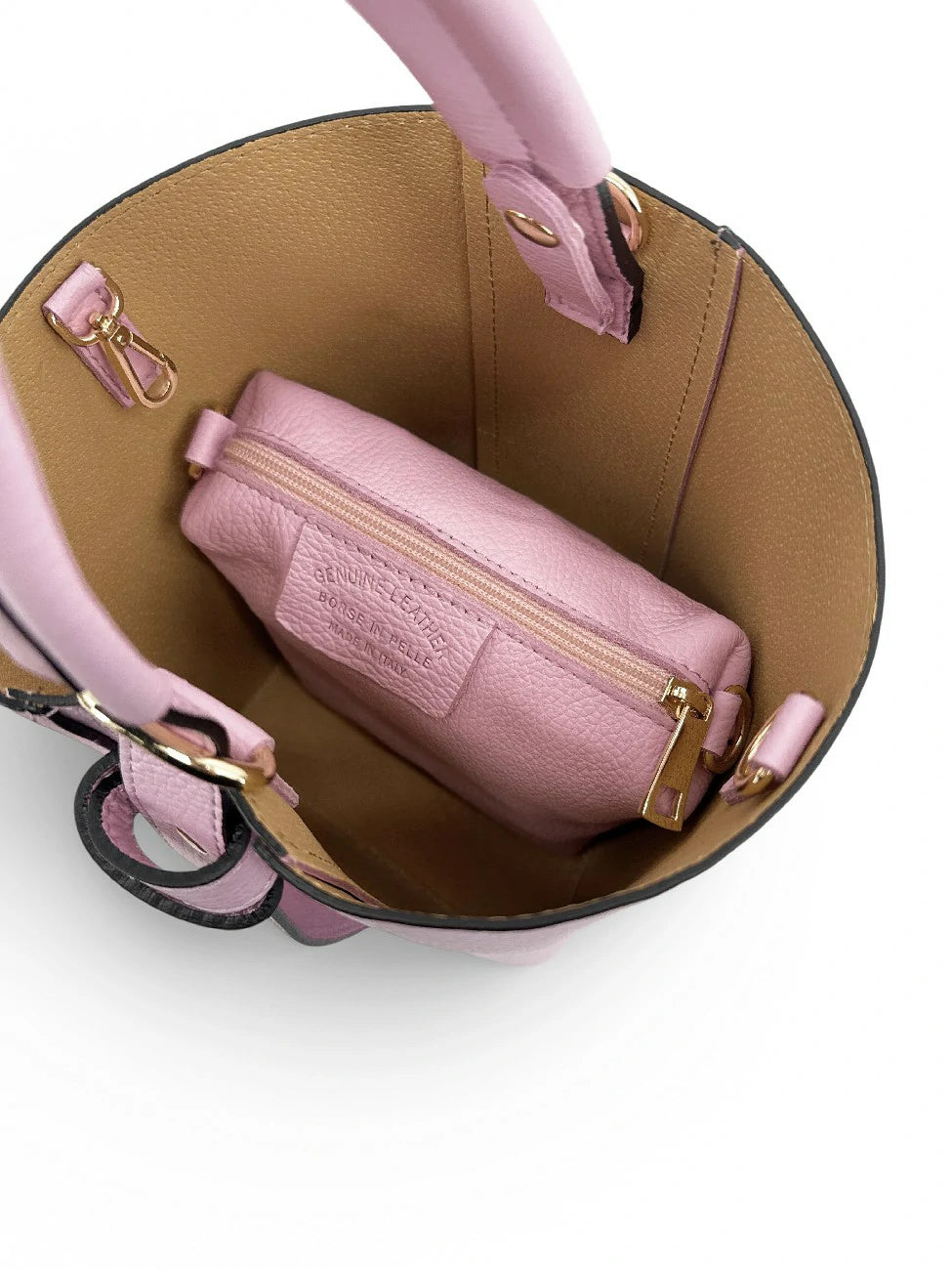 Bolso y bolsillo de cuero grano BIRDIE Púrpura