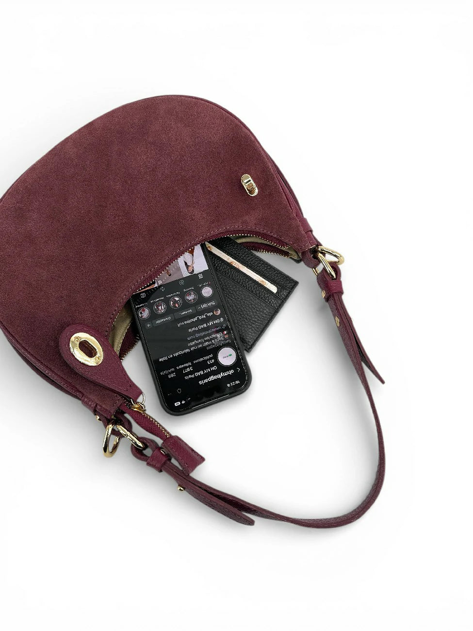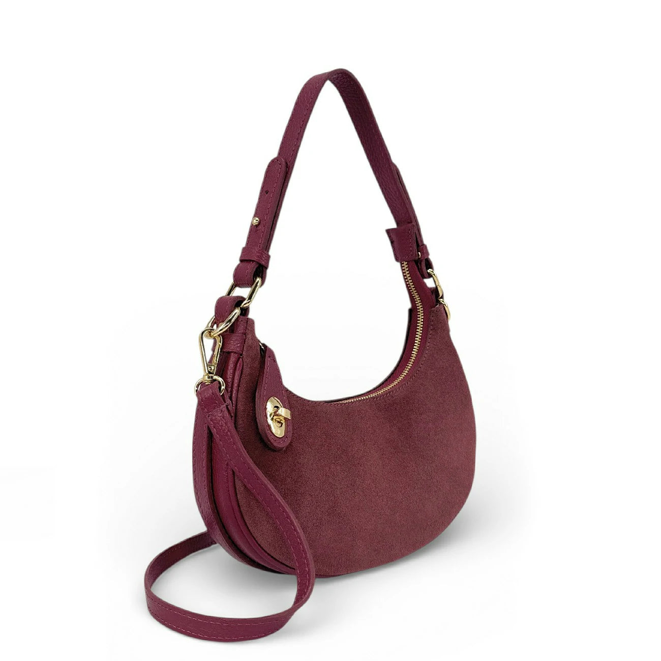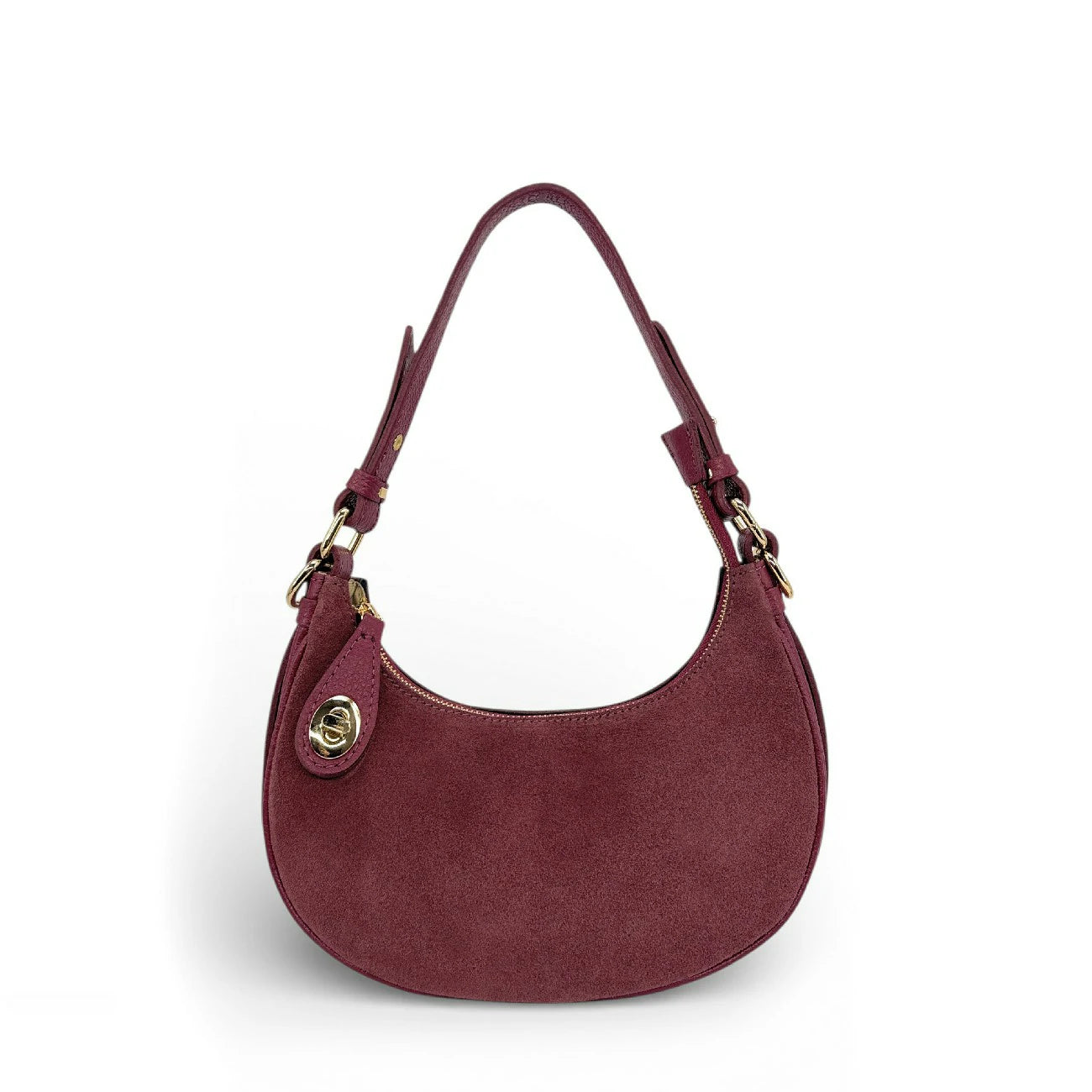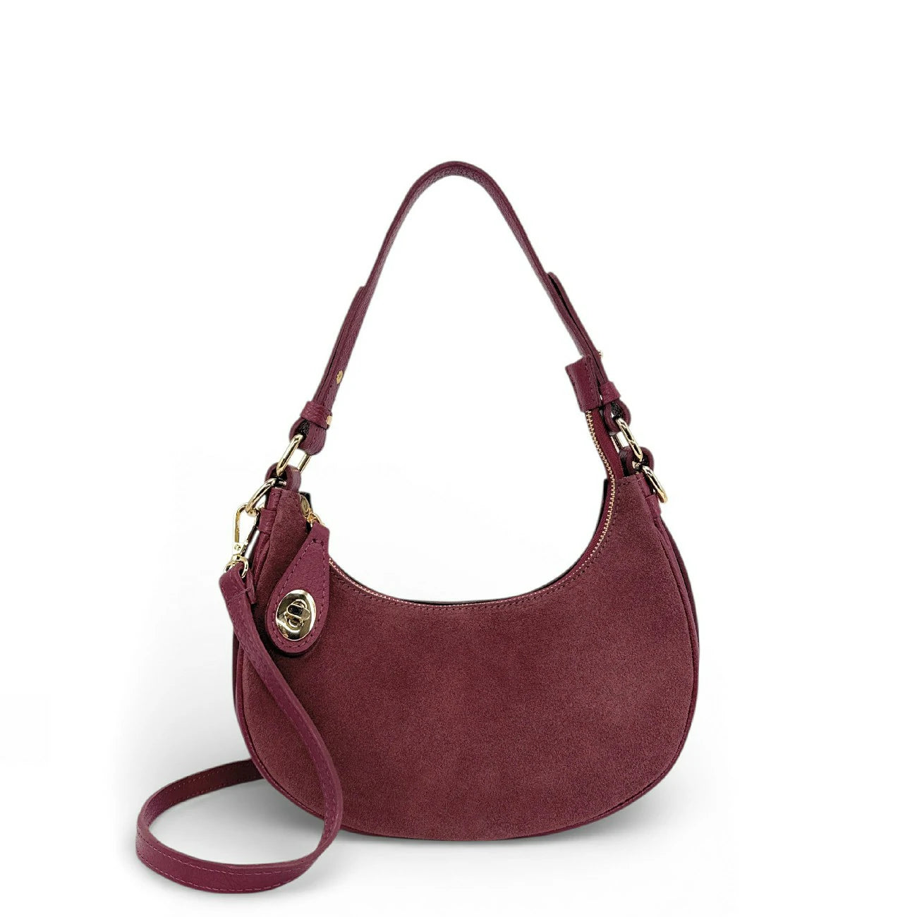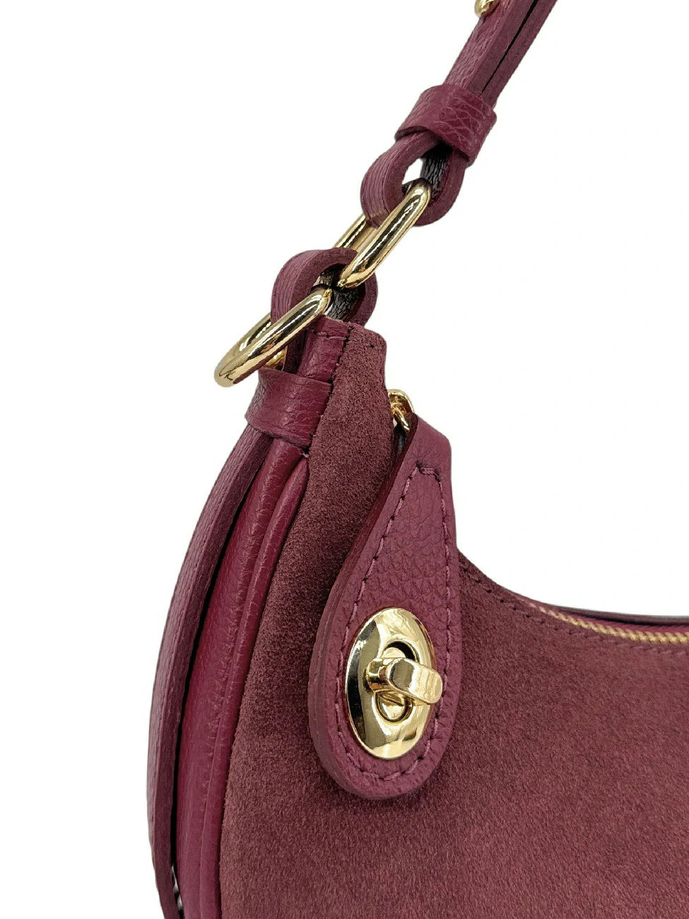 Finiture perfette e un impeccatura per questo sacchetto di mezza luna di dimensioni ideali: manico totalmente rimovibile e regolabile da 19 a 25 cm, per un'usura comoda sul gomito o sotto il braccio, in pelle velours tendenza raccolta in pelle a grana per solidità e bi-matiera che ci seduce e infine l'ultra-chic Con la sua serratura dorata che fissa la sua chiusura. Un cinturino in pelle a grana, elle Anche rimovibile, completa questo modello versatile con colori vellutati! Disponibile in: