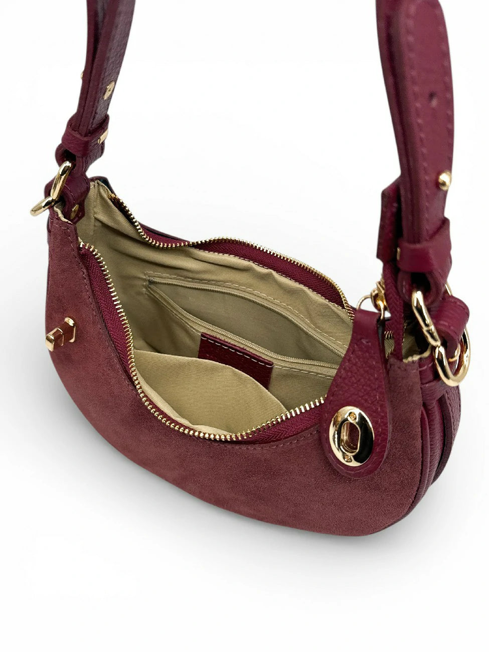 | Denominazione | Borsa main mezza luna in pelle scamosciata MUNE Cammello leggero |