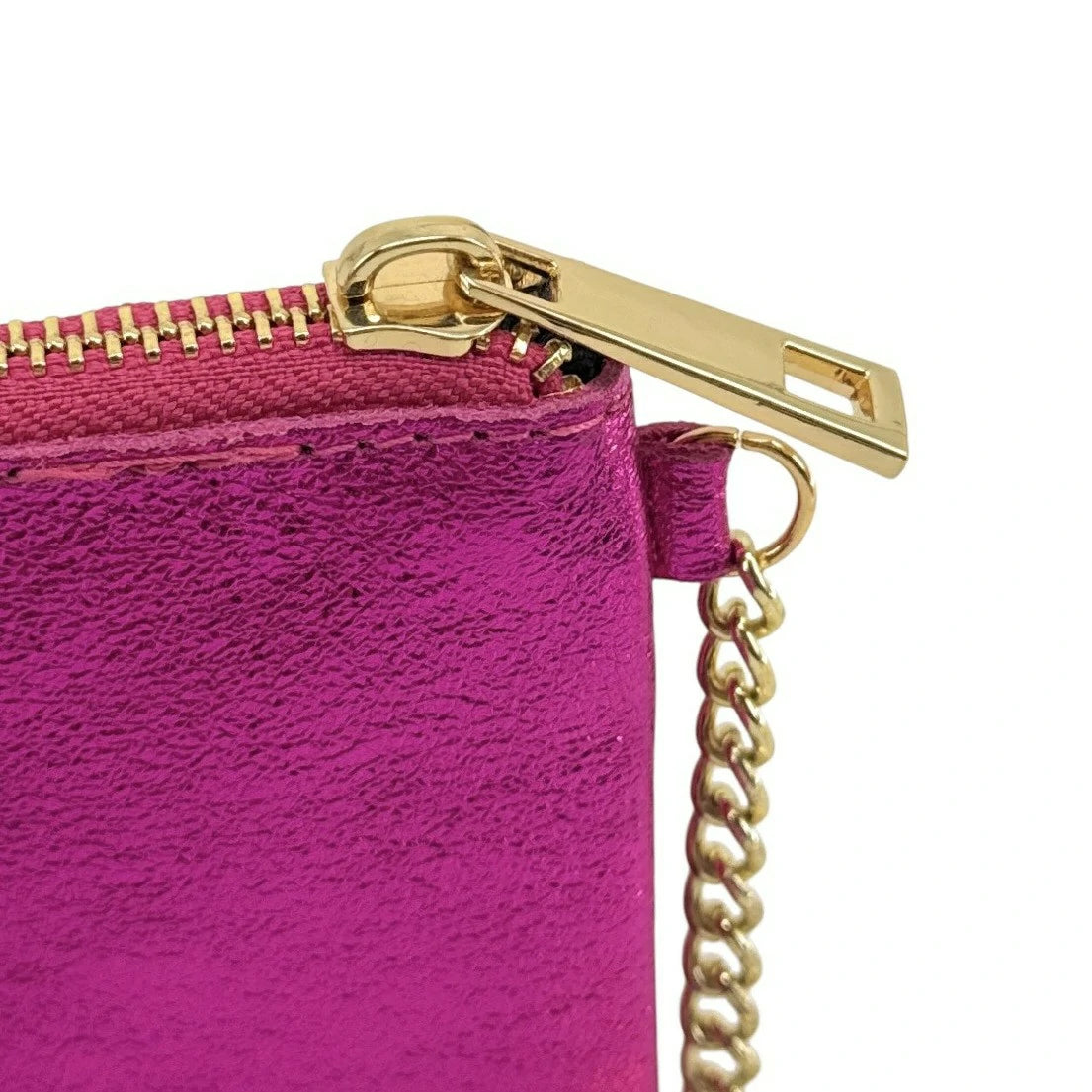 Lasciati sedotto da questo portafoglio in pelle brillante, arricchita con una catena con carabinatore. Accessorio ideale per personalizzare la borsa, sa come combinare stile e praticità quotidiana. Fai attenzione, appenderà gli occhi tanto quanto le tue chiavi!