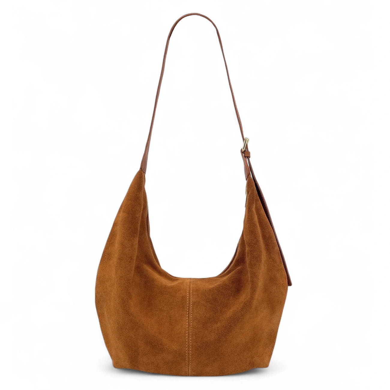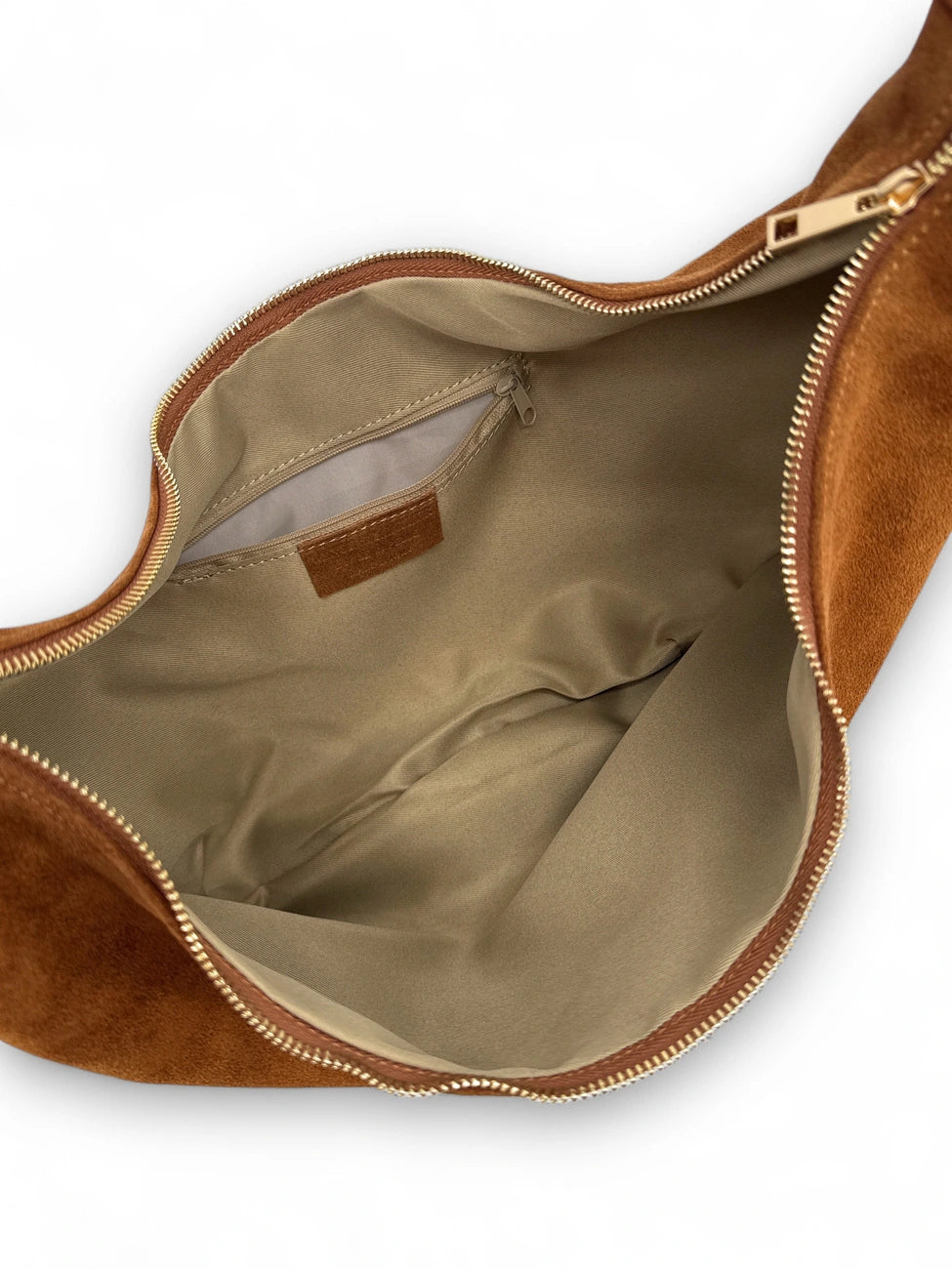 Dénomination | Besace demi-lune en croûte de cuir HERMIONE Camel foncé |