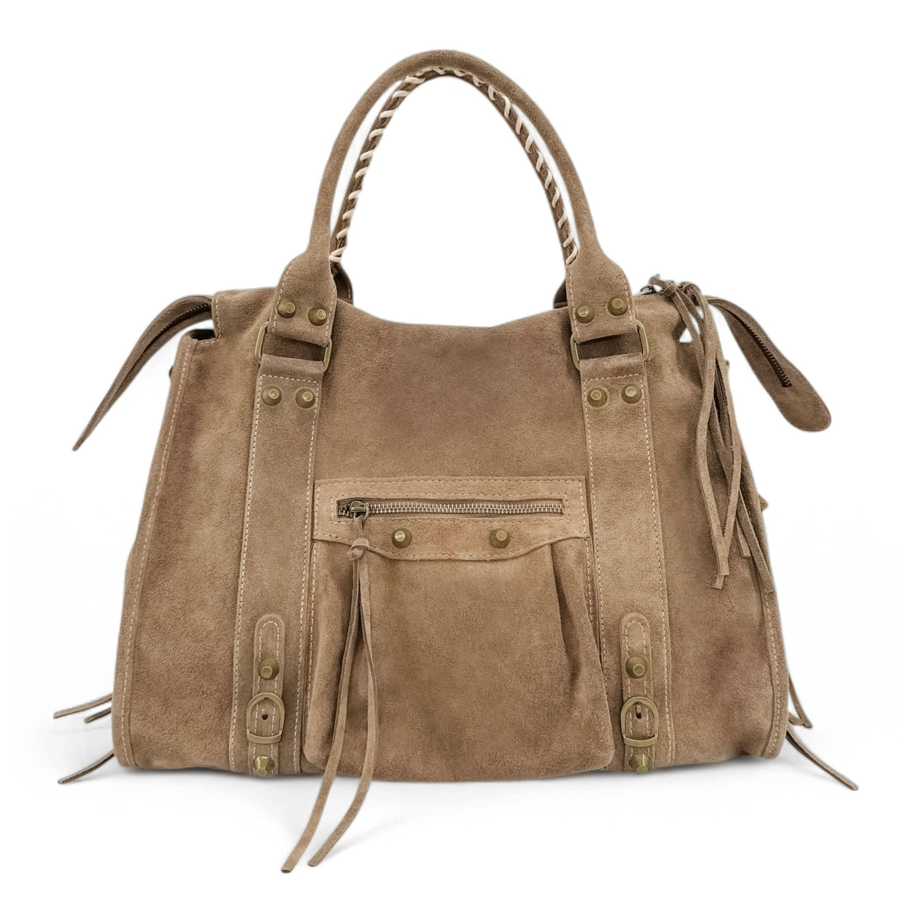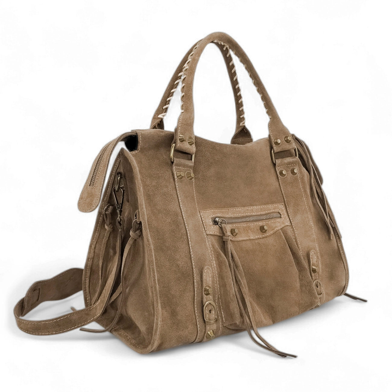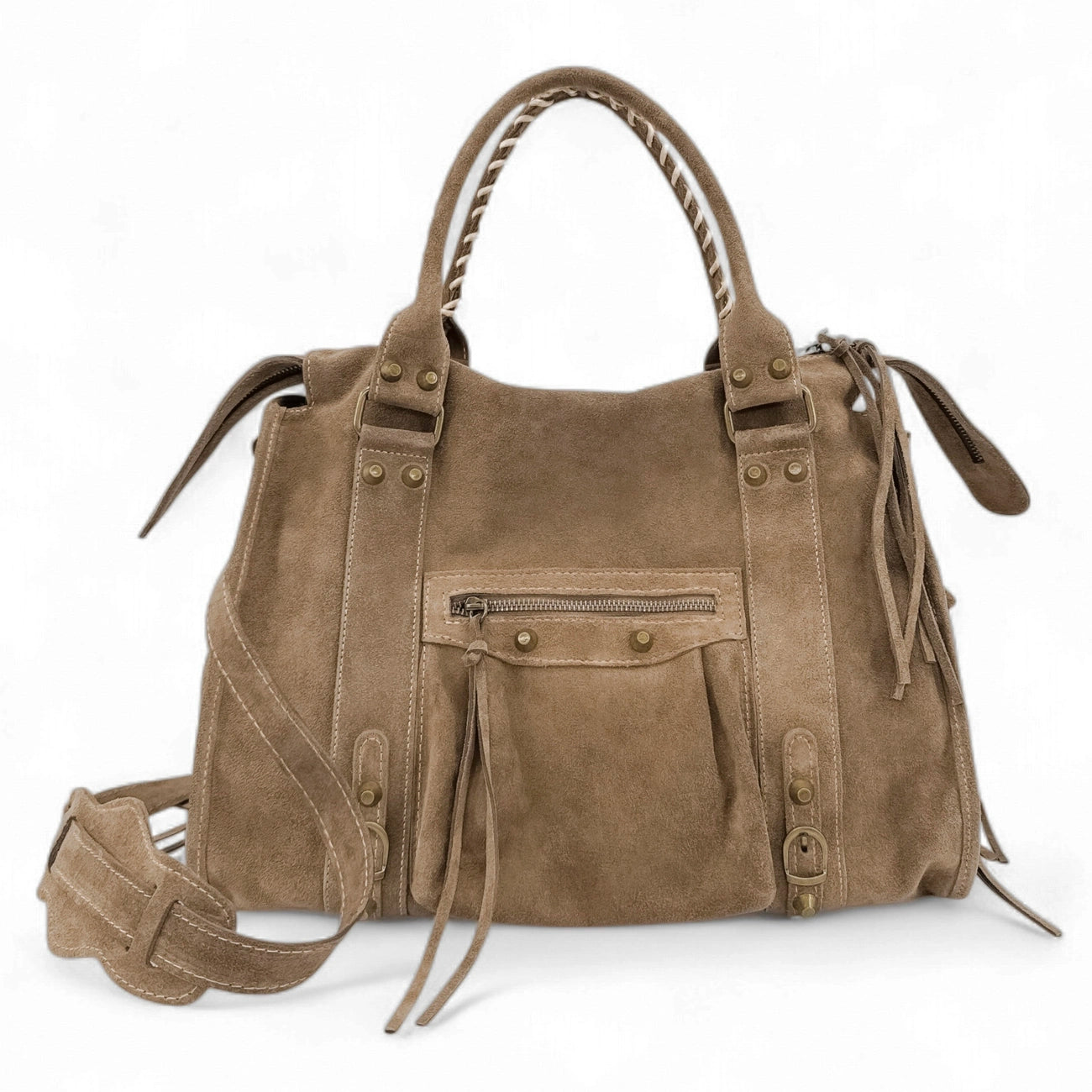 Grand sac à main en daim STORM SUEDE XL Taupe foncé