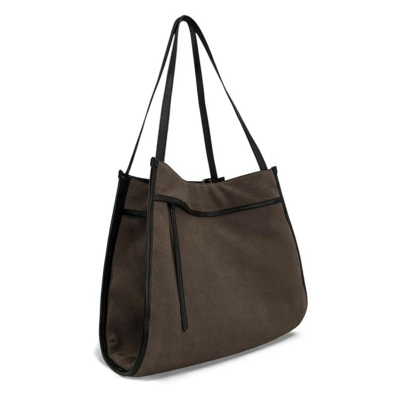 Grand sac cabas en daim et cuir lisse PURDEY Chocolat