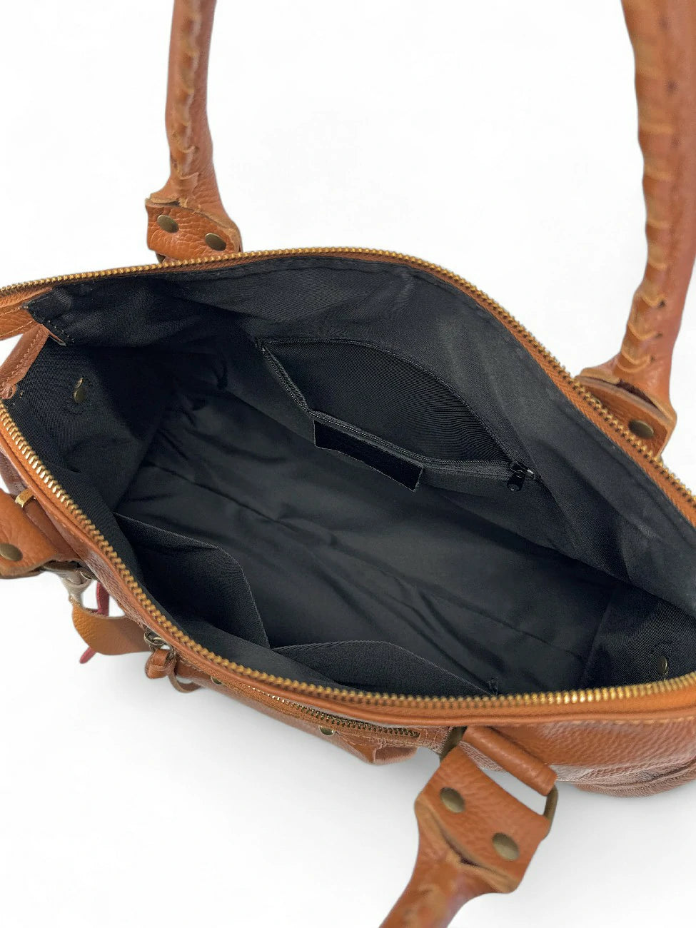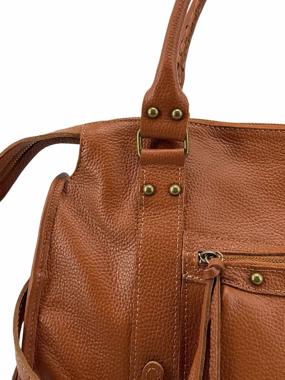 Notre best seller décline ici en camel foncé sa version la plus polyvalente pour les cours ou le bureau ! Grâce à son solide cuir texturé bénéficiant d'une finition protectrice, il ne craint pas de sortir sous la pluie, et transporter cahiers et ordinateur ne lui pose pas de souci. Il ne sacrifie rien au style qui fait de lui un best-seller : forme trapèze, petits clous rond laitonnés, lacets et anses filetés, et offre en plus un rapport qualité prix absolument imbattable ! Efficace, tendance, et tout nouveau : de petites quantités seulement seront disponible pour Noel, ne tardez pas !