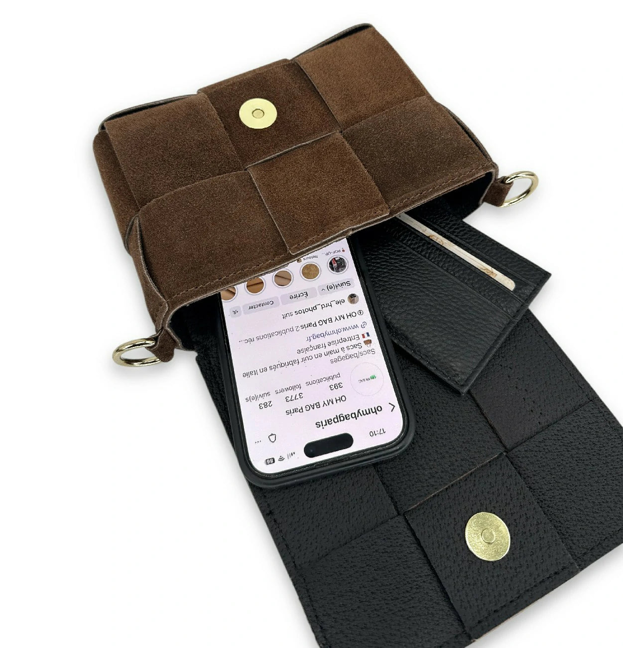 Ce micro sac pochette séduit par sa matière tressée et son format ingénieux. Élégant dans sa délicieuse couleur chocolat et fonctionnel dans sa forme rectangulaire volumineux, il garde vos essentiels à portée de main tout en sublimant vos tenues. Porté main ou épaule, il incarne l’équilibre parfait entre utilité et sophistication.