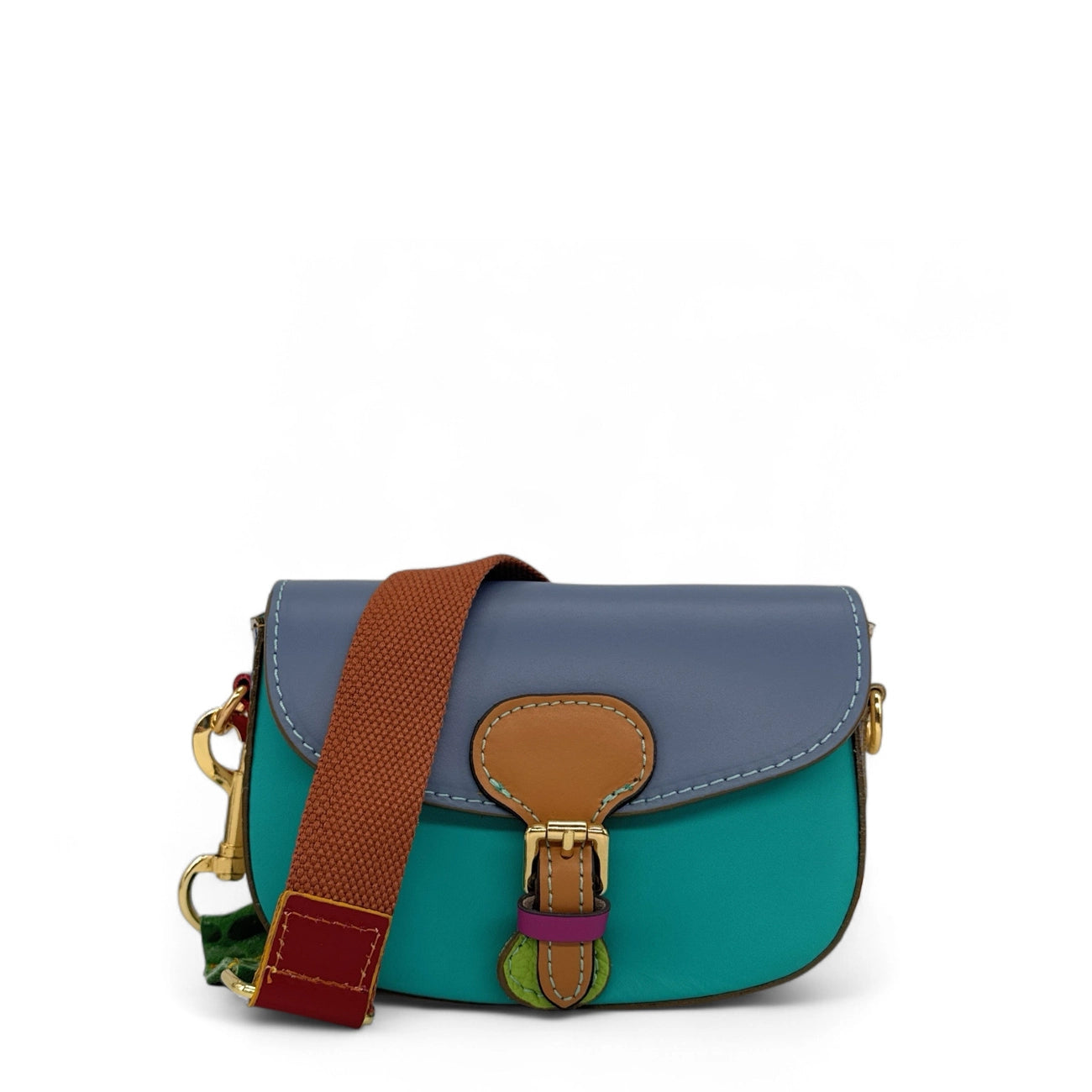 Mini-sac en cuir lisse MINI MADDY Bleu glacier, Bleu paon et Taupe