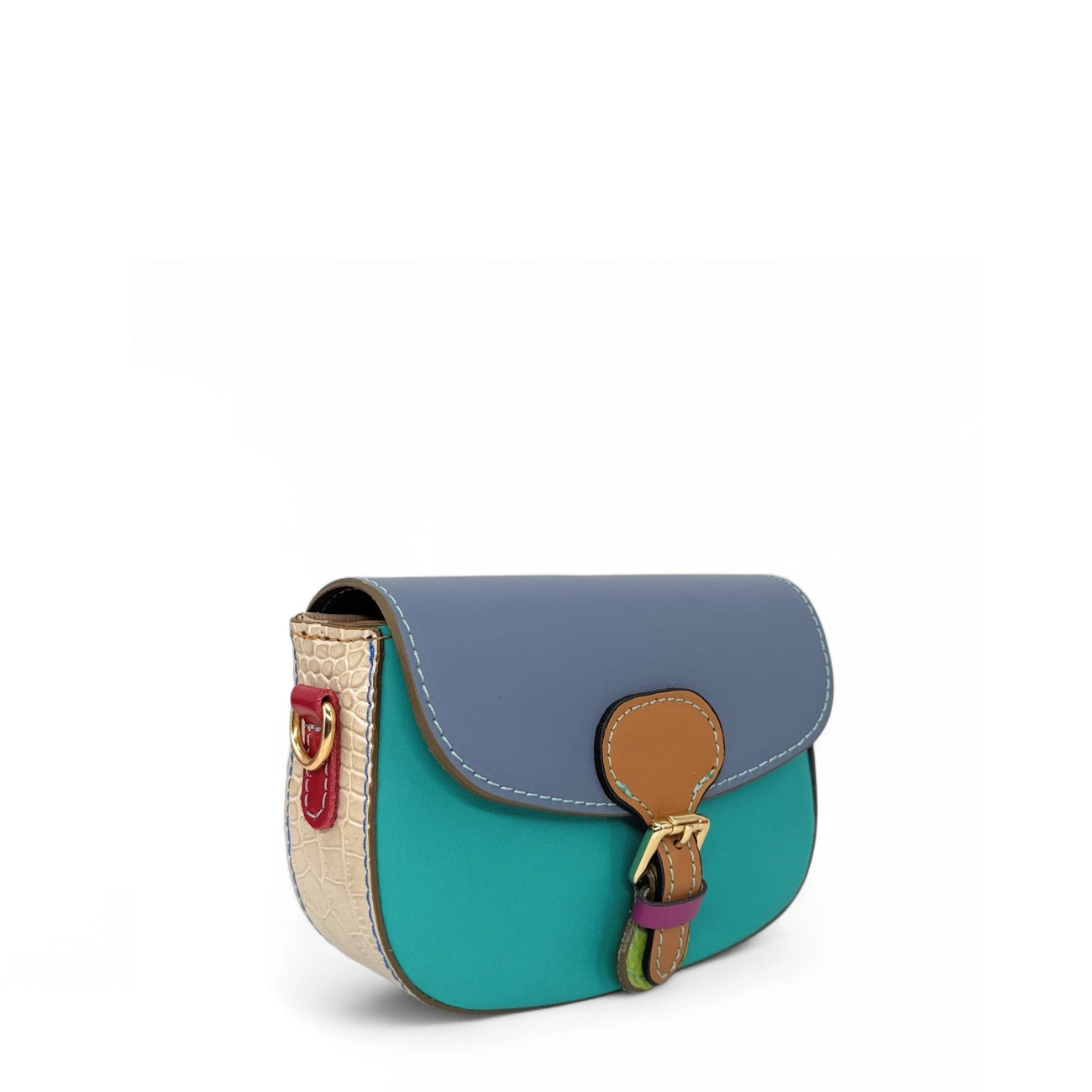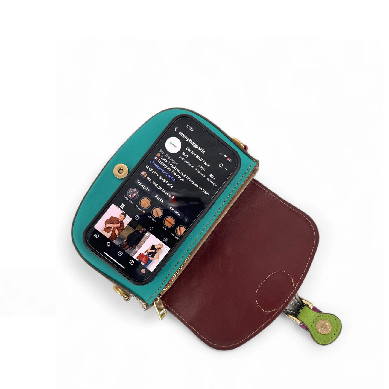 Ce mini sac en cuir upcyclé danse entre les couleurs. Découpé dans des chutes précieuses, il raconte l’histoire de matières sauvées et réinventées. Patchwork vibrant, il pulse d’énergie et de gaieté. On le devine artisanal, vivant, imprévisible. Il n’existe qu’en un seul exemplaire, comme un secret bien gardé.