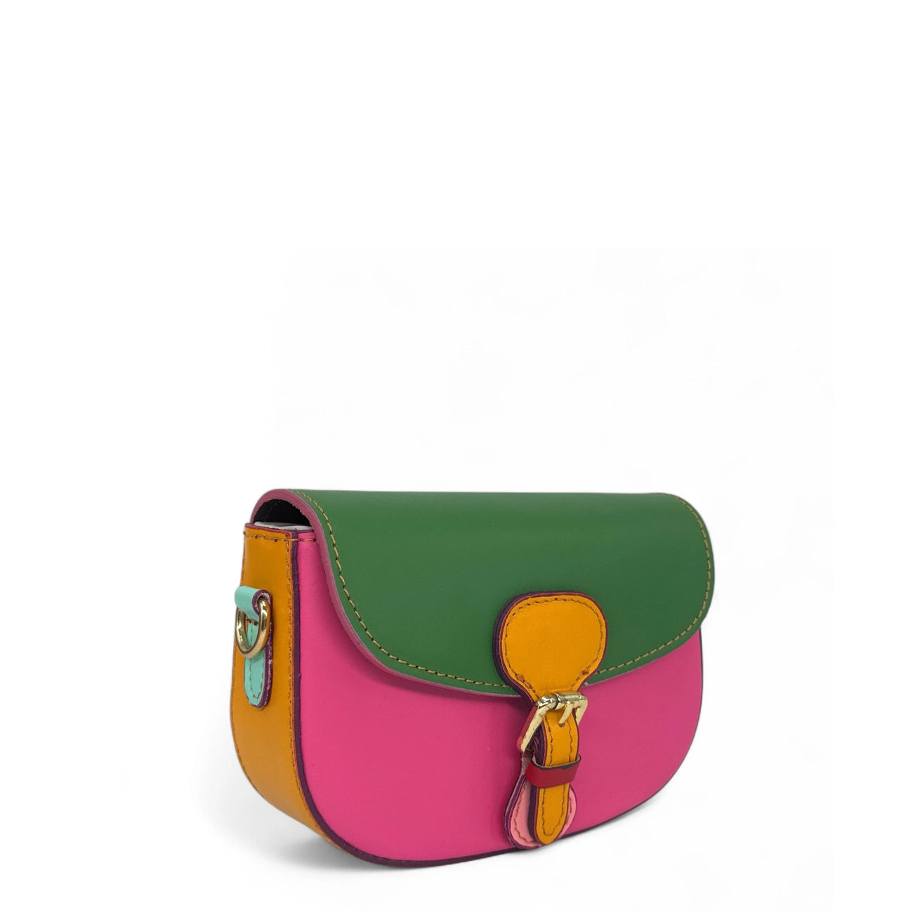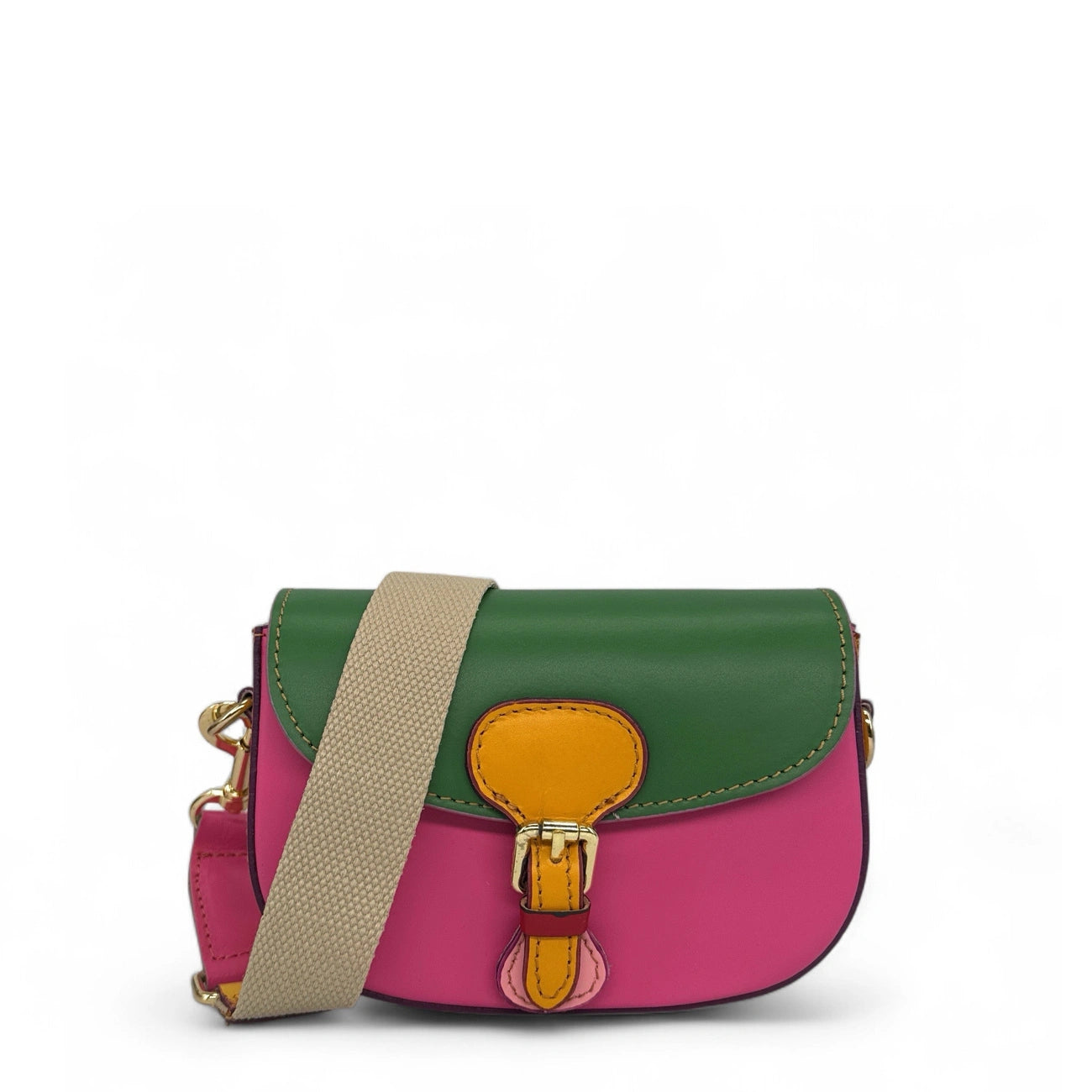 Mini-sac en cuir lisse MINI MADDY Vert anglais, Fuchsia et Taupe