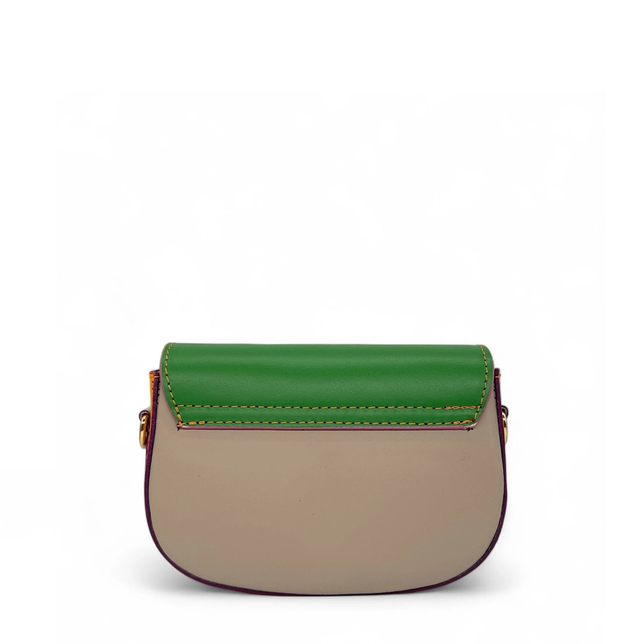 Dénomination | Mini-sac en cuir lisse MINI MADDY Vert anglais, Fuchsia et Taupe |
