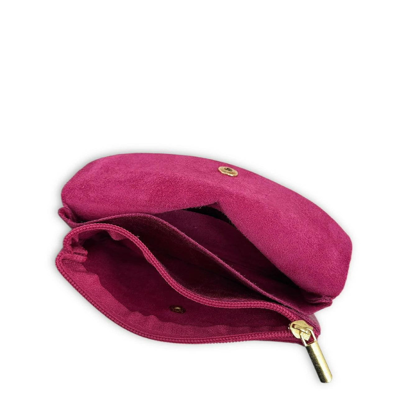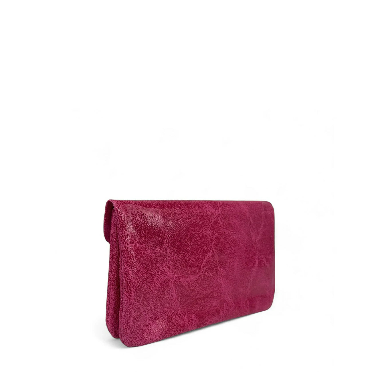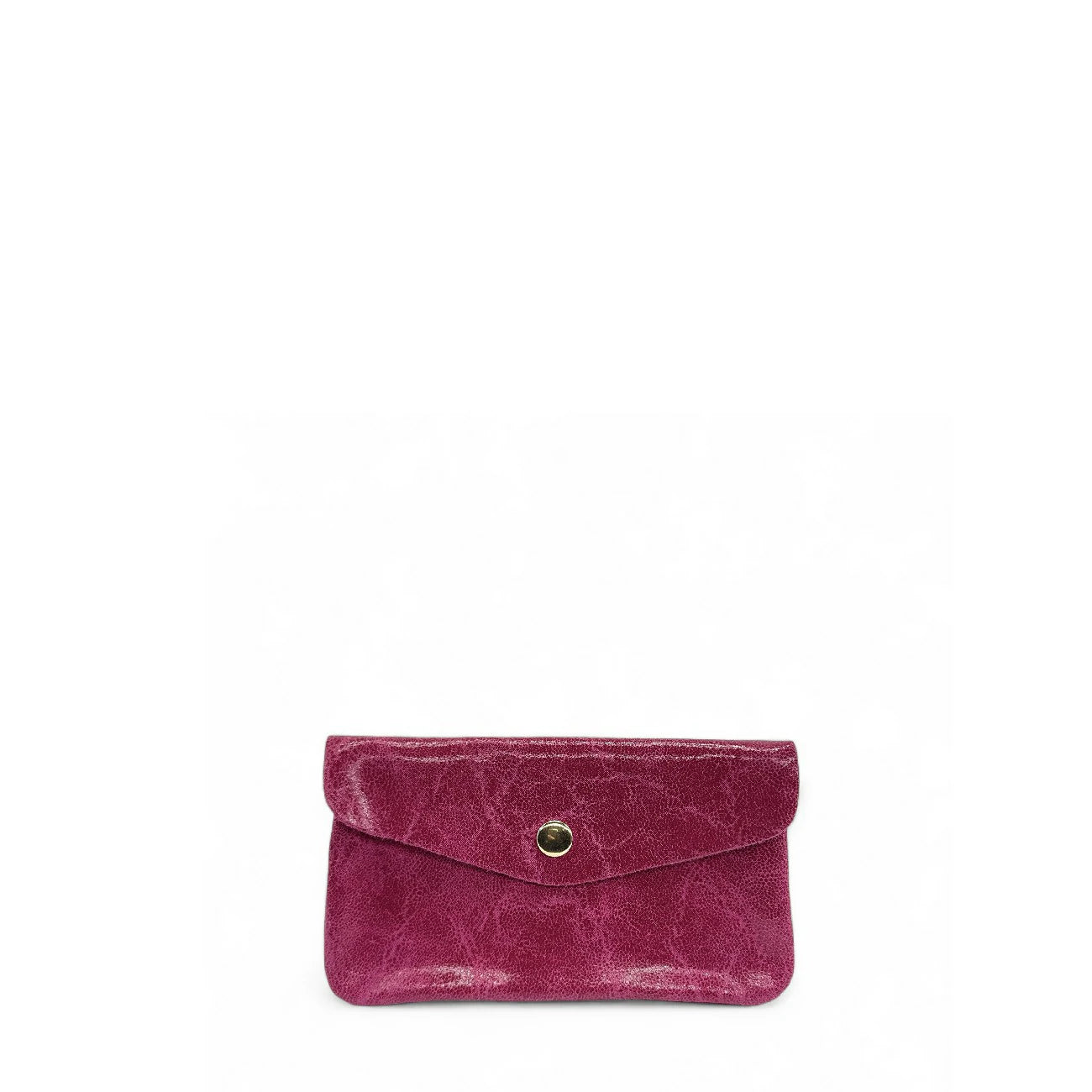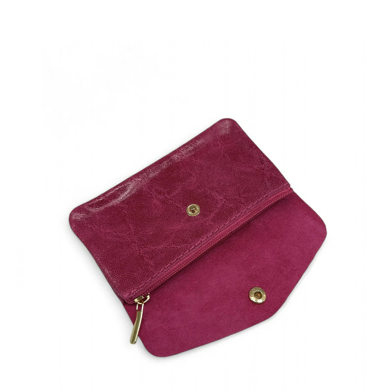 Pochette porte-monnaie porte-cartes en cuir brossé rose fuchsia, fabriquée en Italie