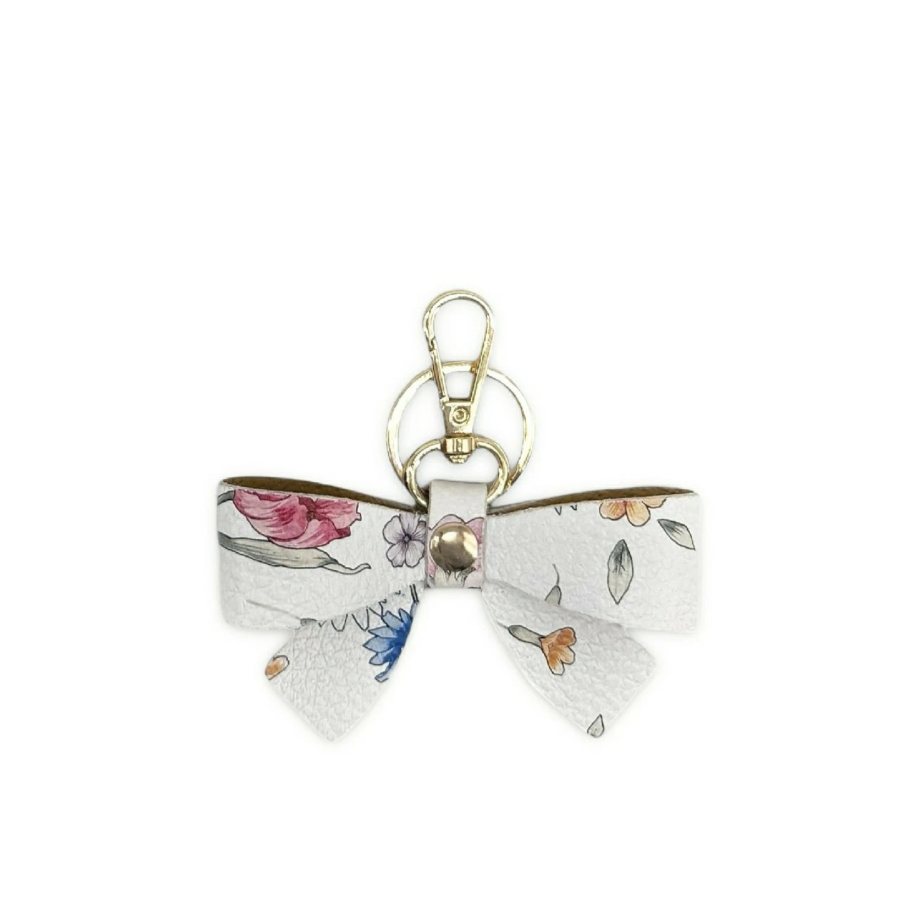 Porte-clés en cuir grainé FARFALA Flower blanc