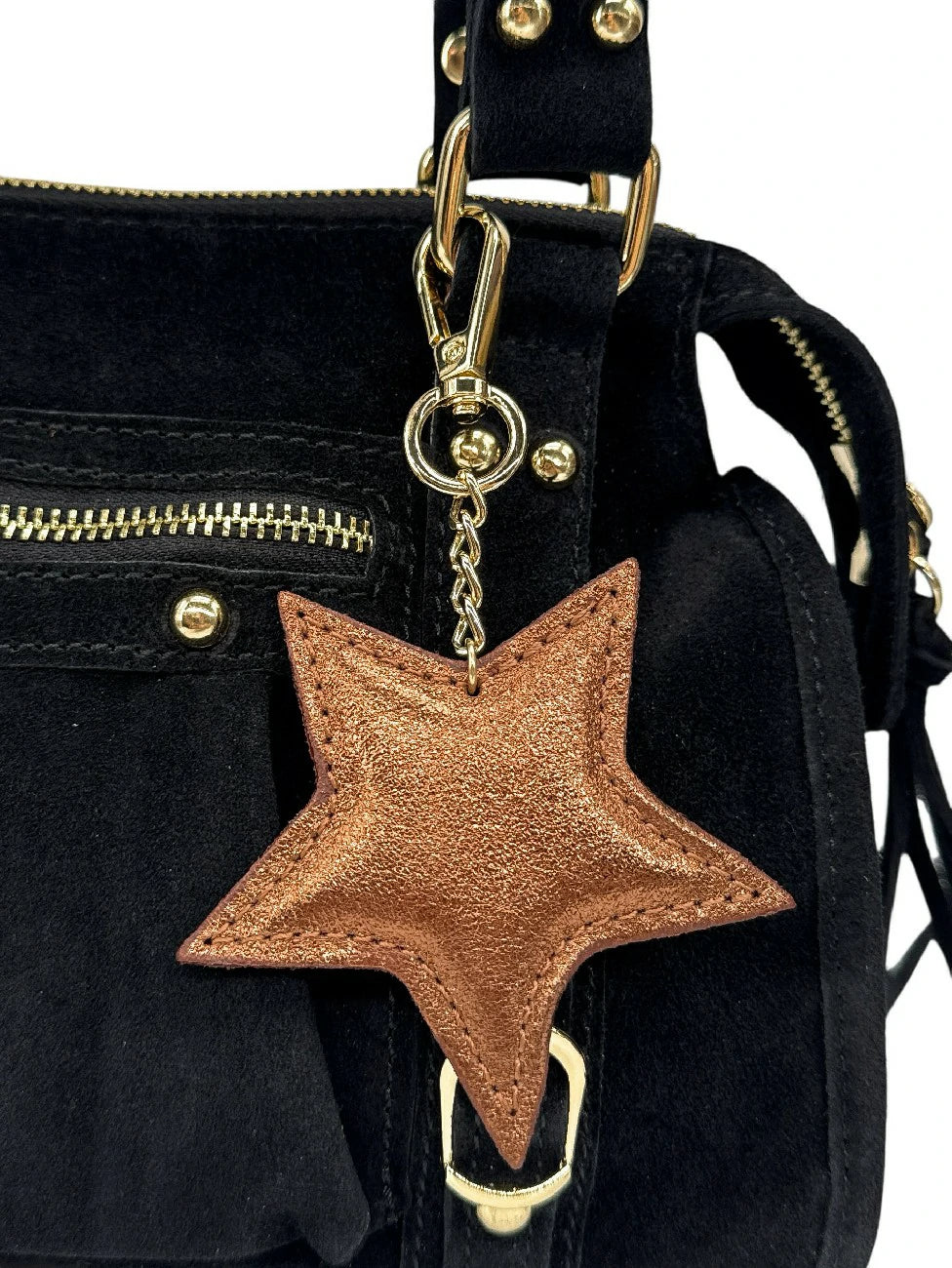 Un bijou de sac Etoile qui réchauffe instantanément l’allure du sac ou des clés. Elle se clipse en un geste et apporte un éclat raffiné. Sa matière travaillée et sa légèreté en font un accessoire poétique à la présence magnétique.