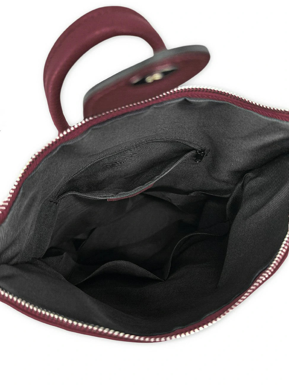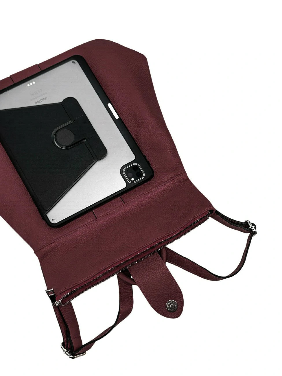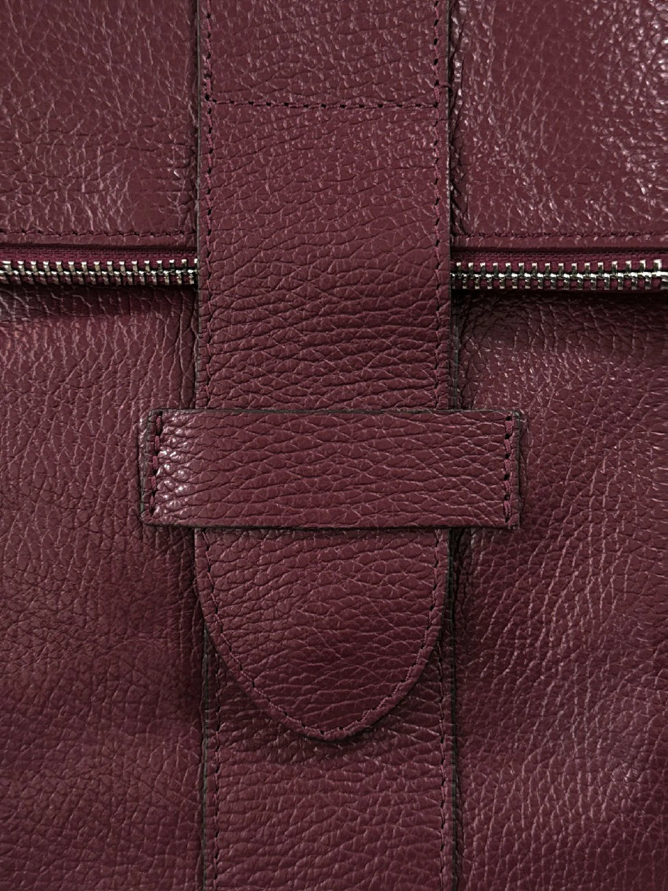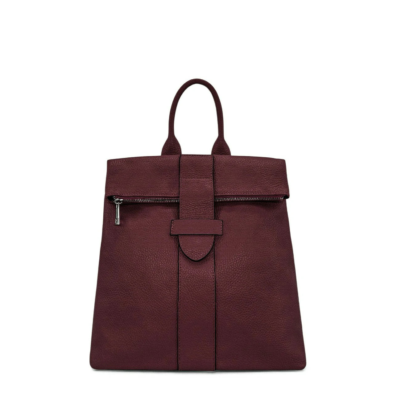 Sac à dos antivol en cuir grainé bordeaux, fabriqué en Italie.