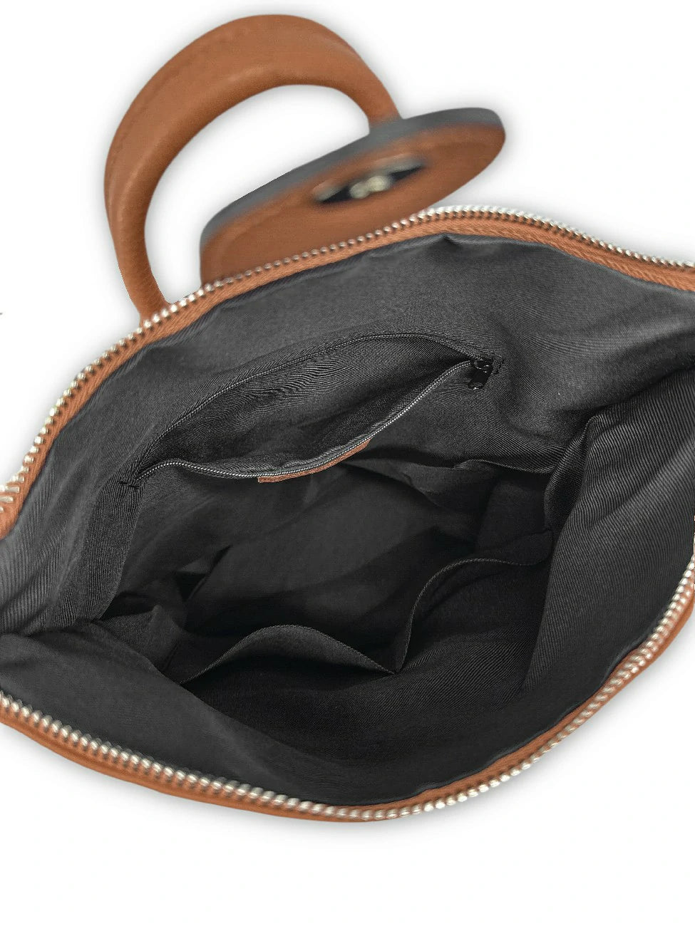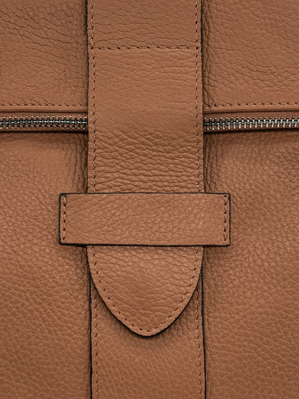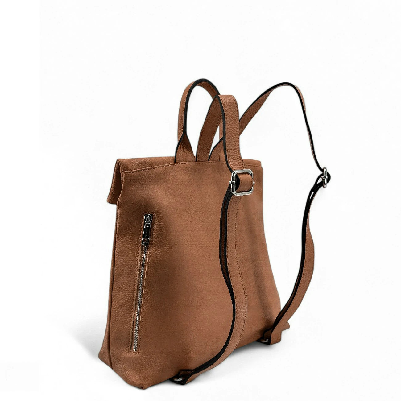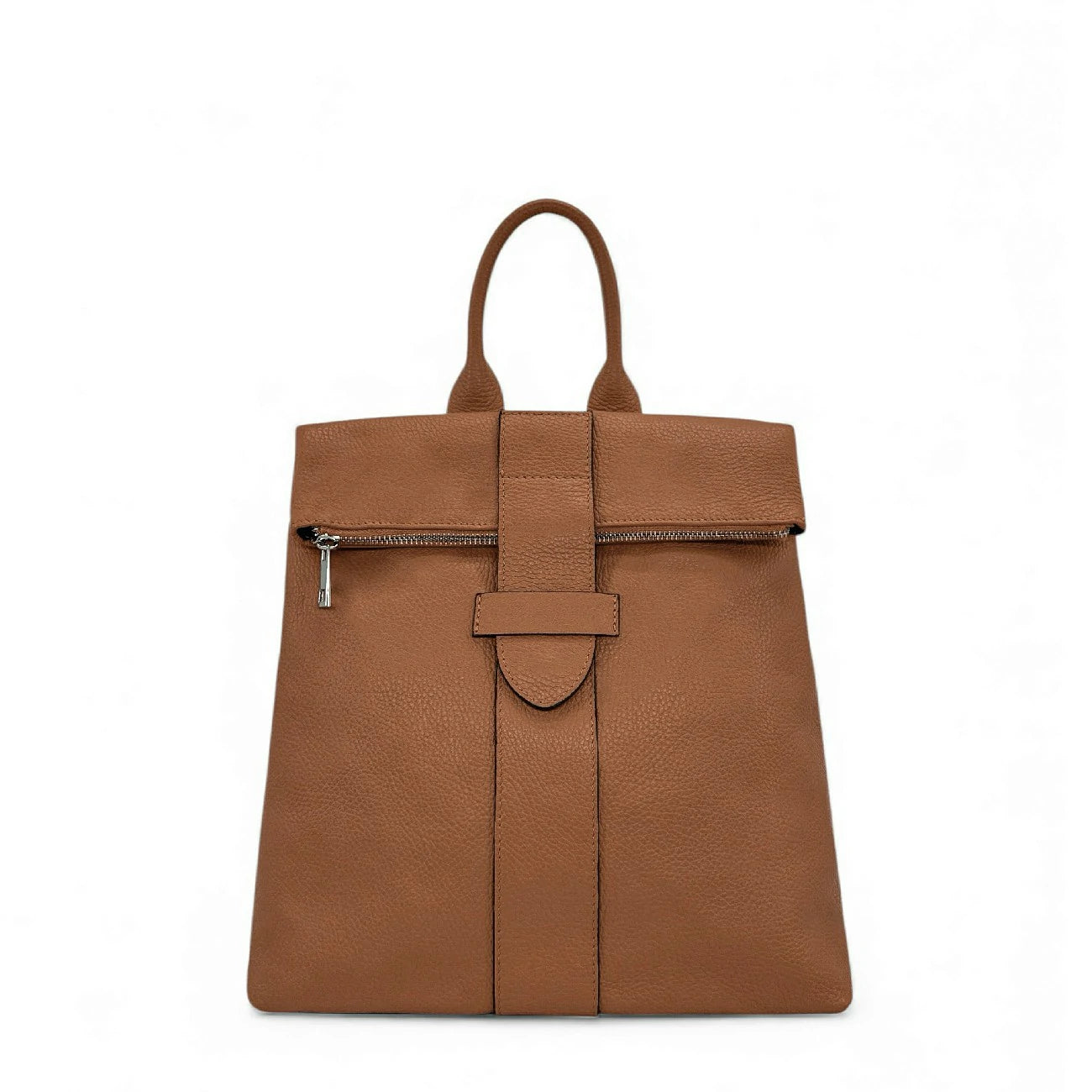 Sac à dos antivol en cuir grainé camel foncé, fabriqué en Italie.
