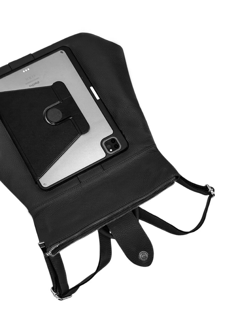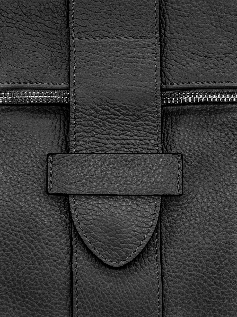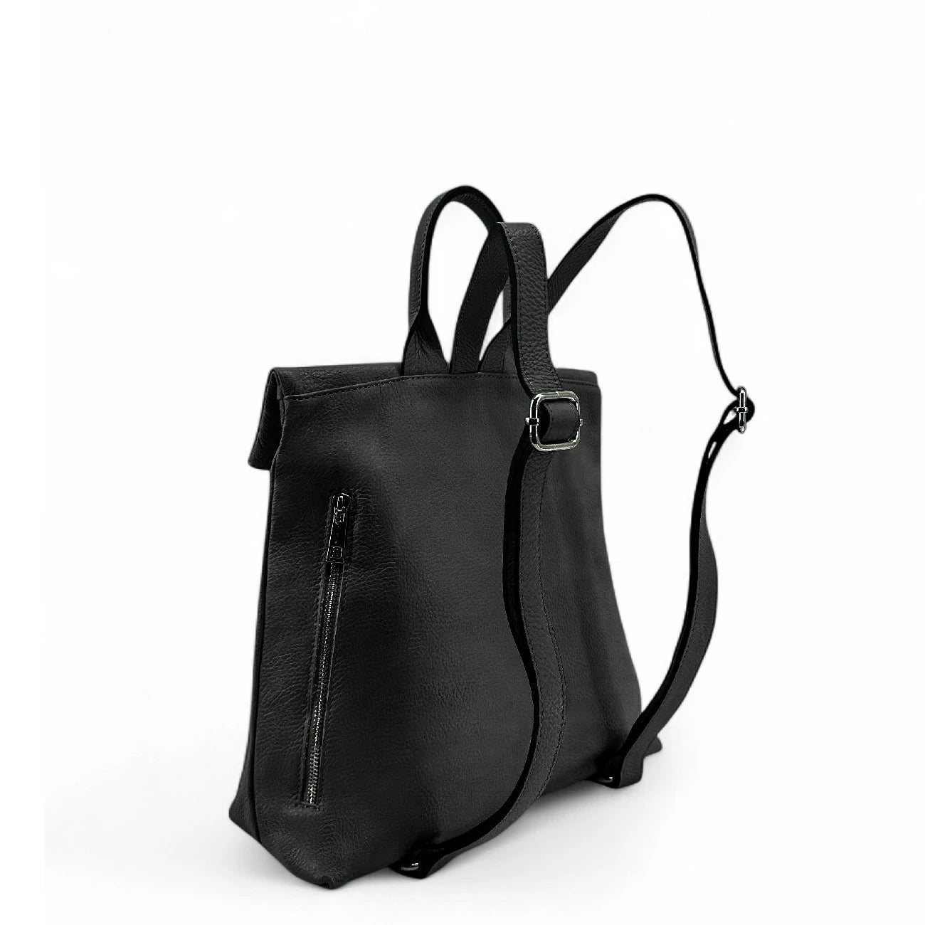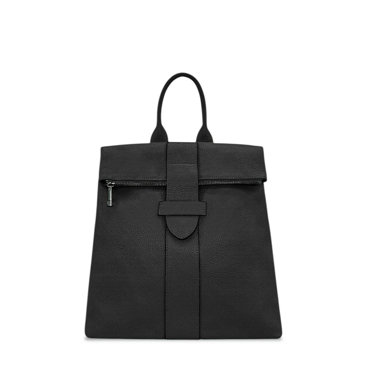 Sac à dos antivol en cuir grainé noir, fabriqué en Italie.
