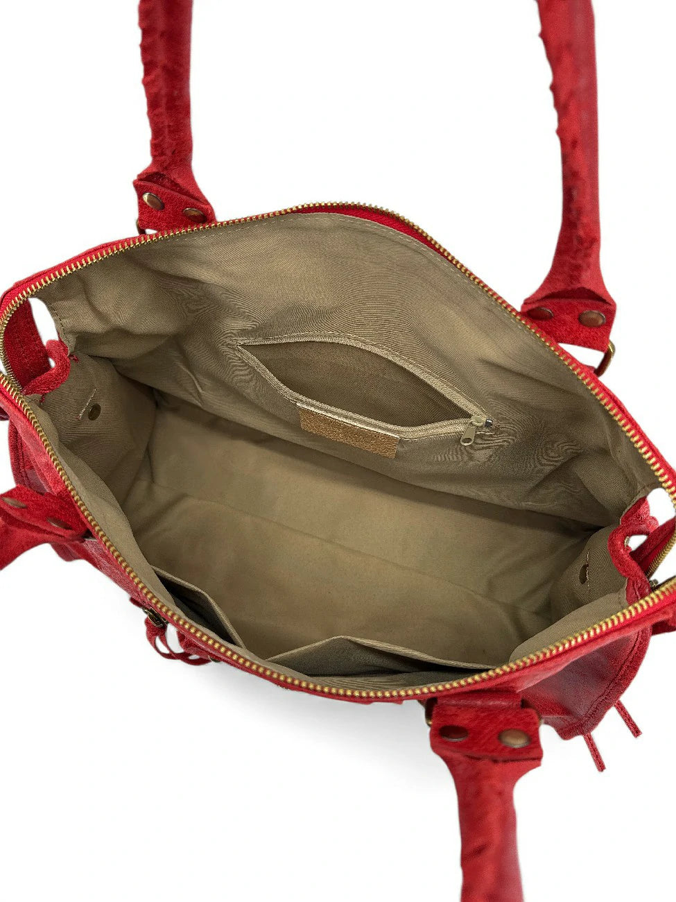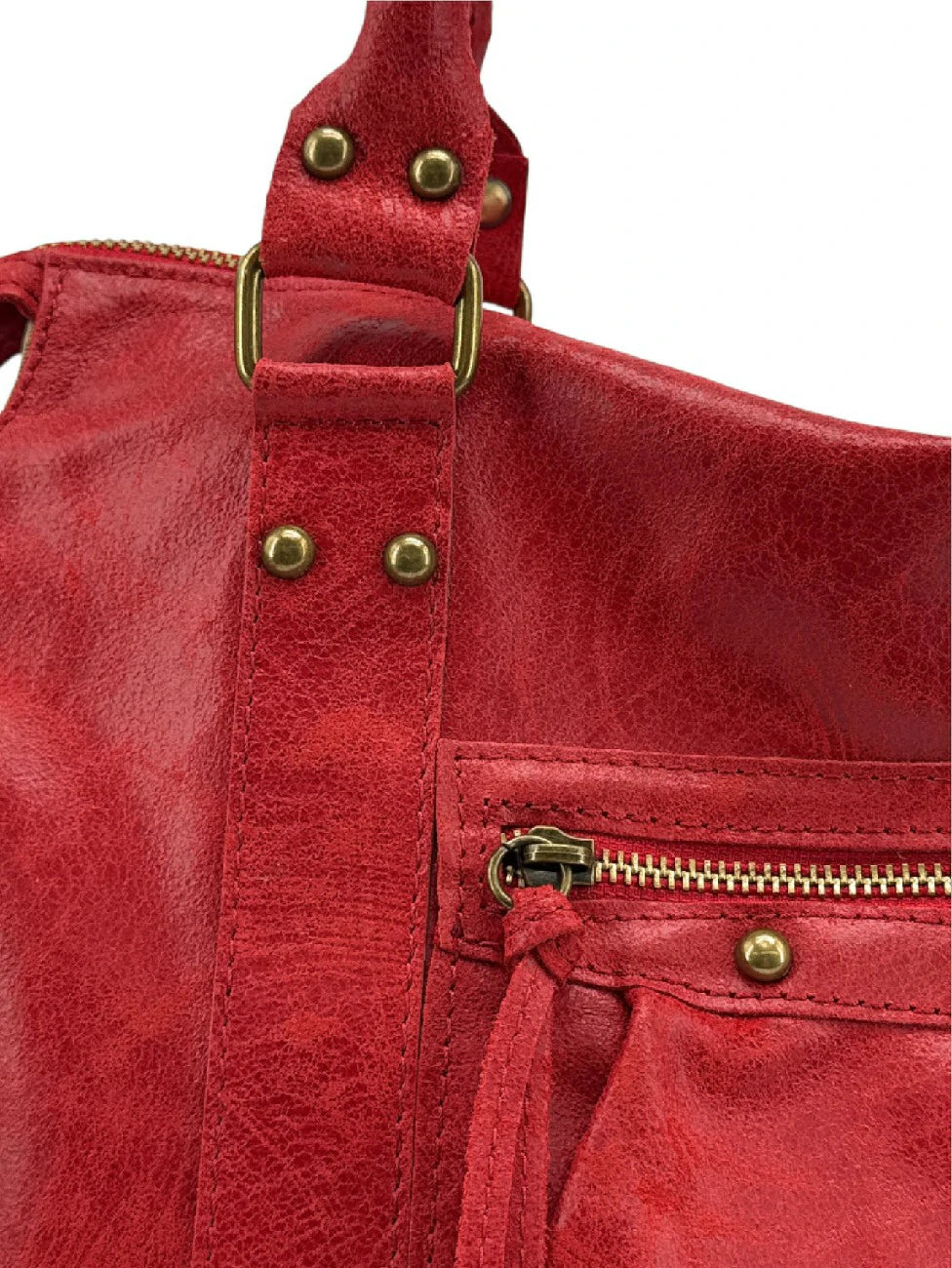 Sac à main en cuir brossé SANDSTORM Rouge garance