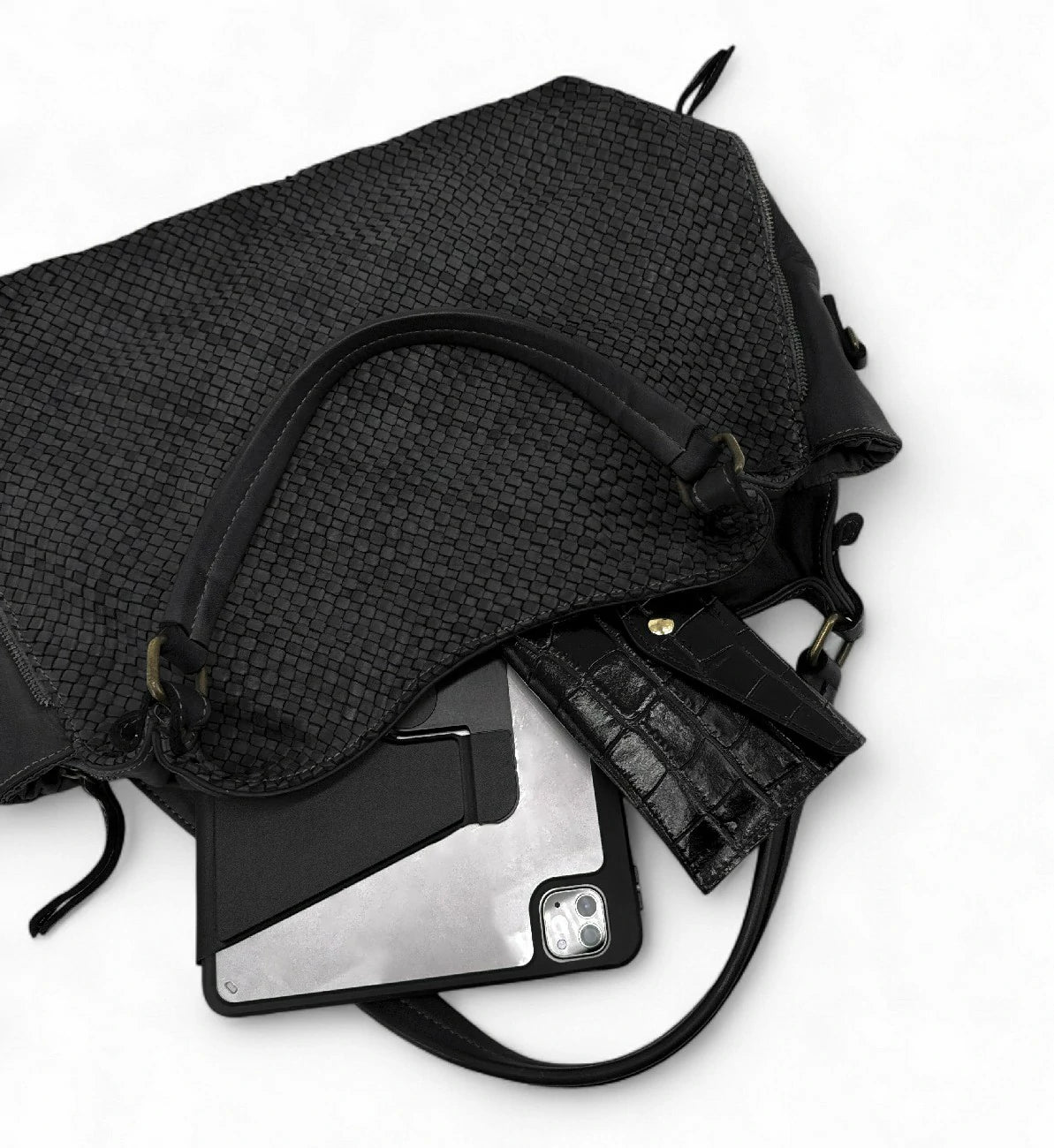 Sac à main en cuir vintage tressé BRISBANE Noir