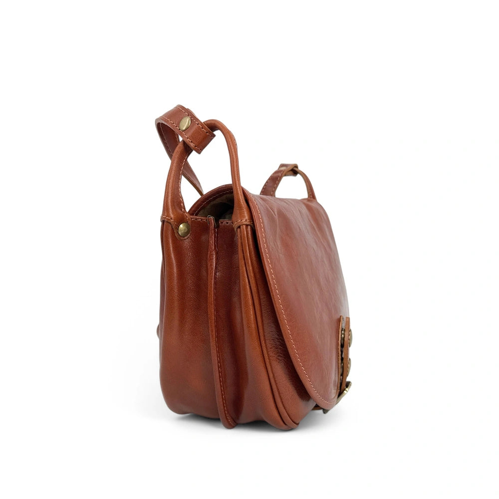 Sac bandoulière en cuir lisse LITTLE VERLAINE Cognac