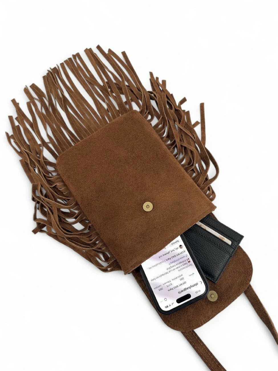 Sous sa teinte camel profond, ce mini sac capture la chaleur du soleil couchant. Sa silhouette souple en nubuck et ses franges aériennes révèlent un chic nomade, facile à vivre. L’accessoire parfait pour rehausser un denim clair ou une veste en laine beige avec ce je-ne-sais-quoi d’élégance naturelle.