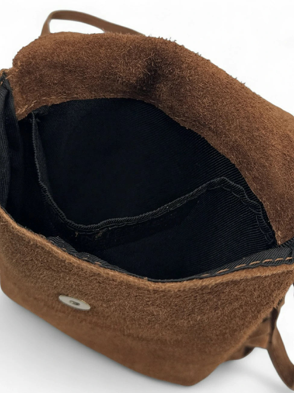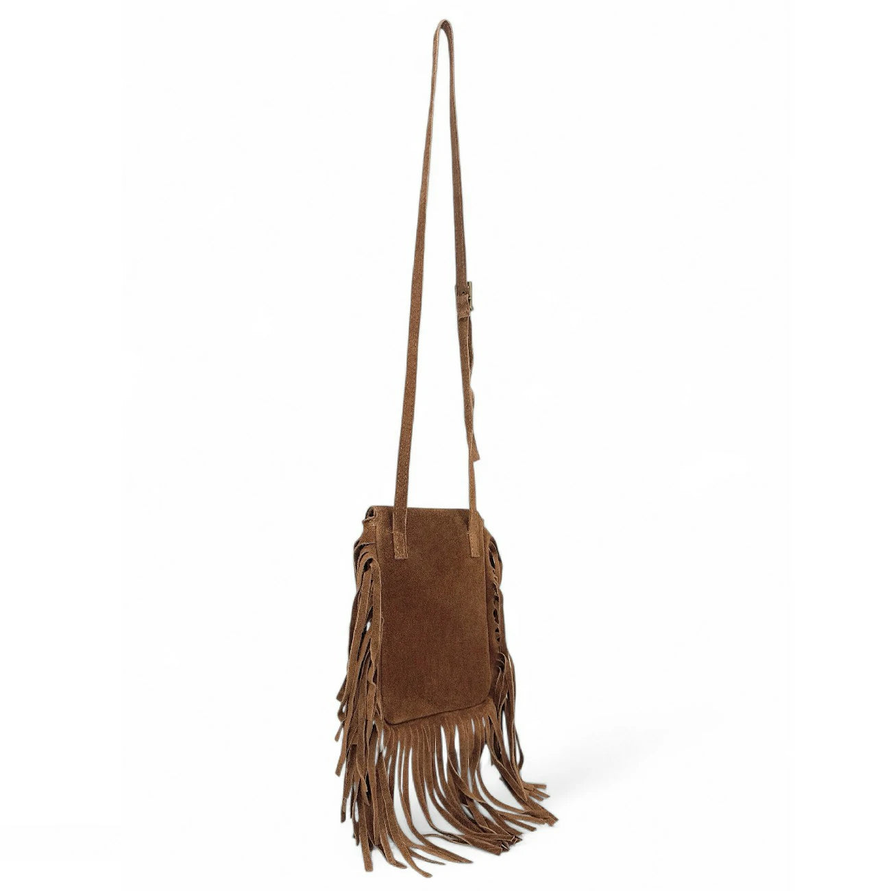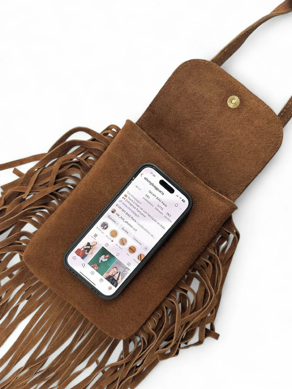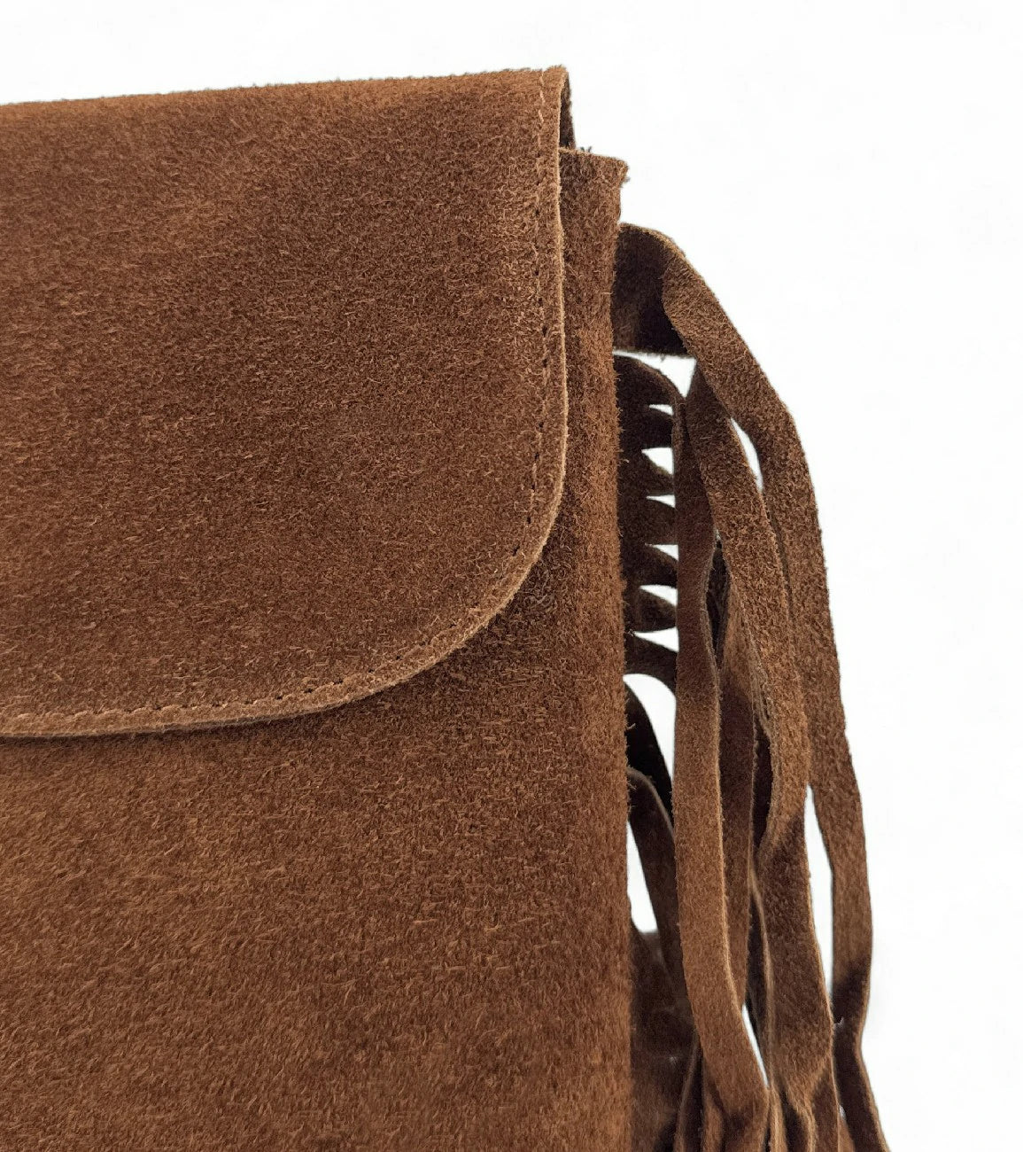 Sac besace à franges en cuir nubuck, fabriqué en Italie.