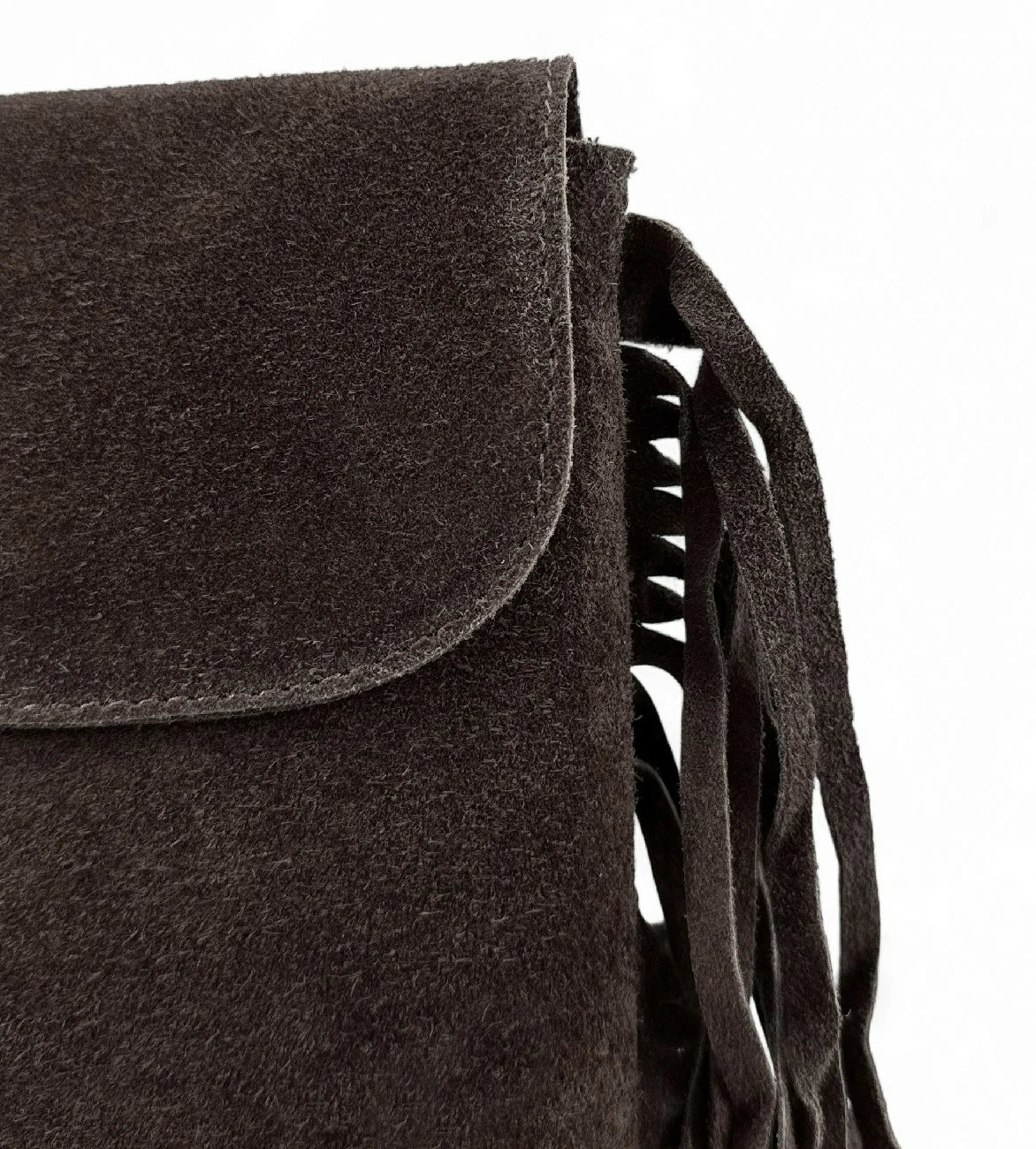Sac besace à franges en cuir nubuck, fabriqué en Italie.