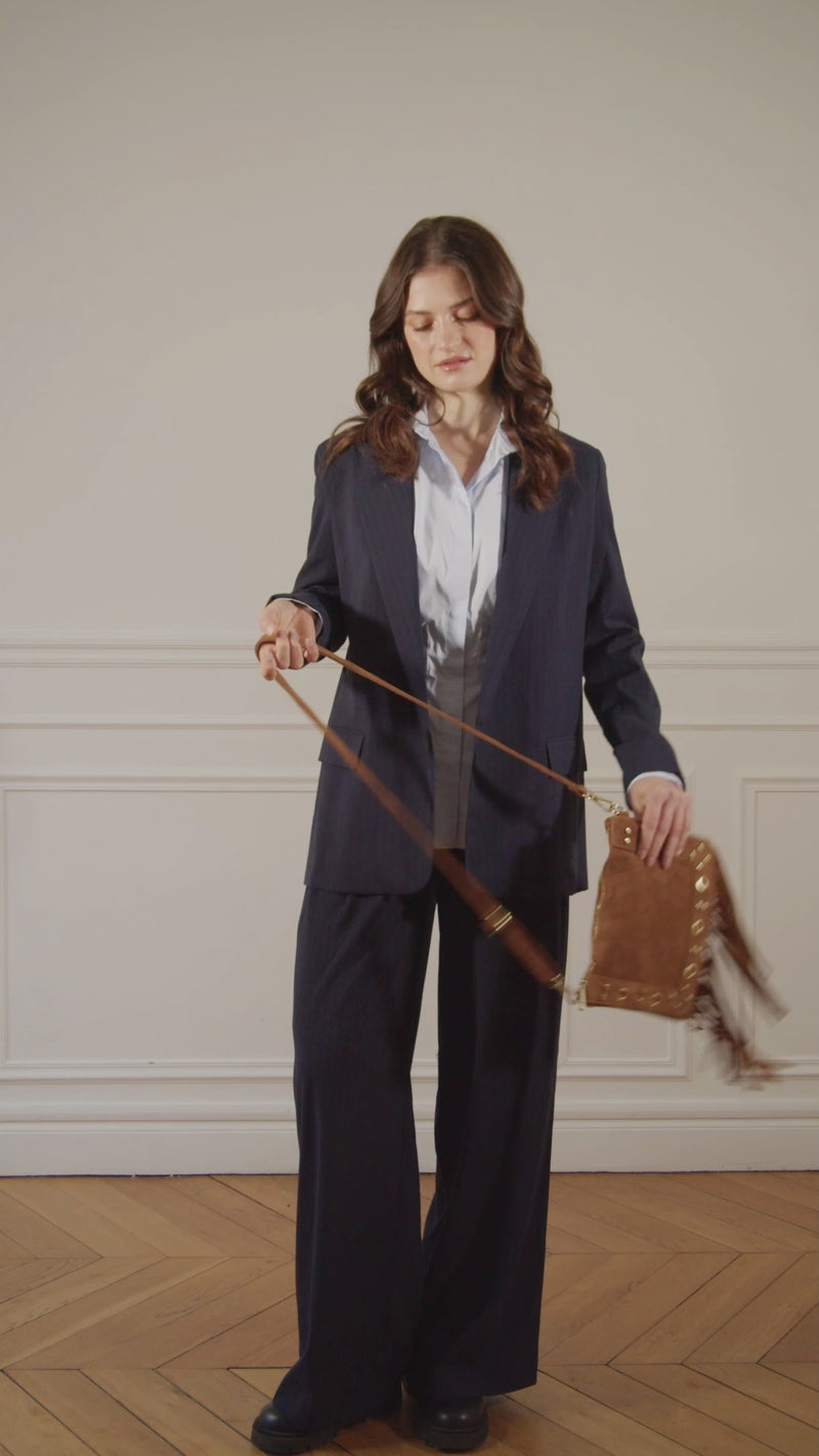 Icône folk au charme moderne, cette besace en cuir nubuck séduit par sa silhouette ultra slim et son jeu de franges souples qui prolongent le mouvement. Encadrée de rivets et de généreux œillets dorés, elle déploie un esprit bohème-chic maîtrisé. Sa bandoulière réglable et amovible s’adapte à tous les styles, tandis que sa poche interne zippée sécurise l’essentiel. Un mini-sac poétique pensé pour accompagner vos jours d’hiver comme vos soirées nomades.