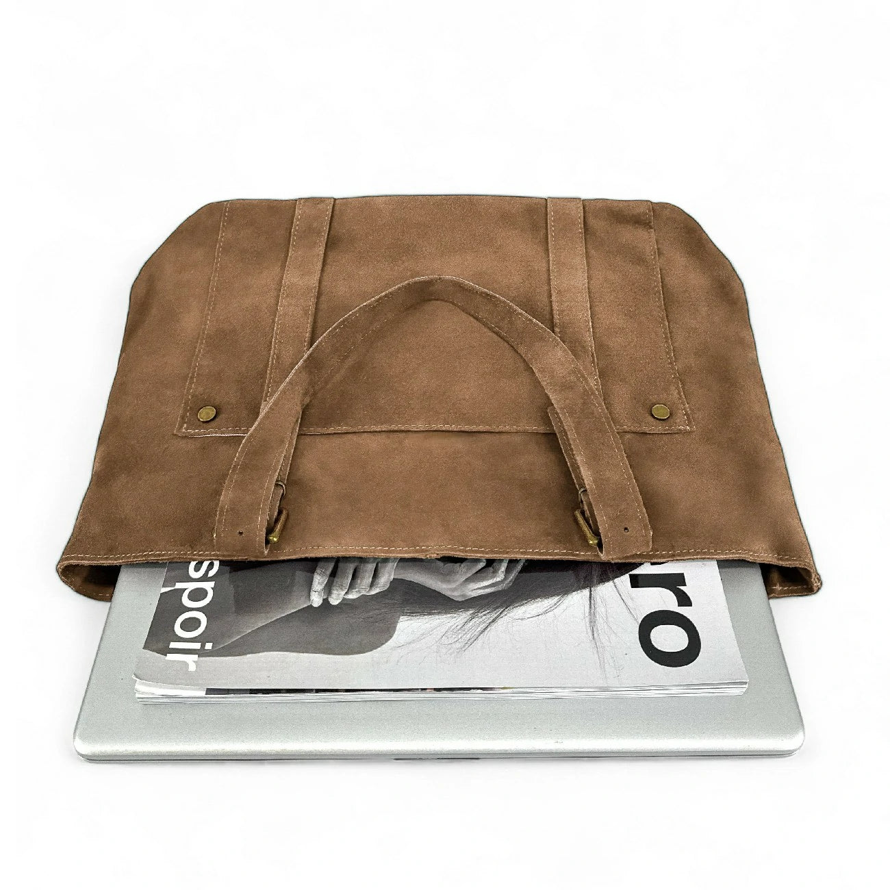 Sac cabas porté épaule en véritable cuir nubuck, fabriqué en Italie.