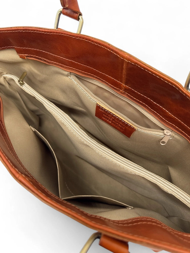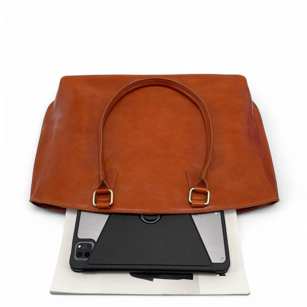 Grand sac cabas en cuir lisse GREENWICH Camel