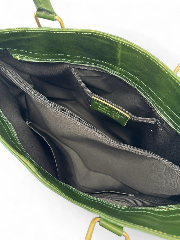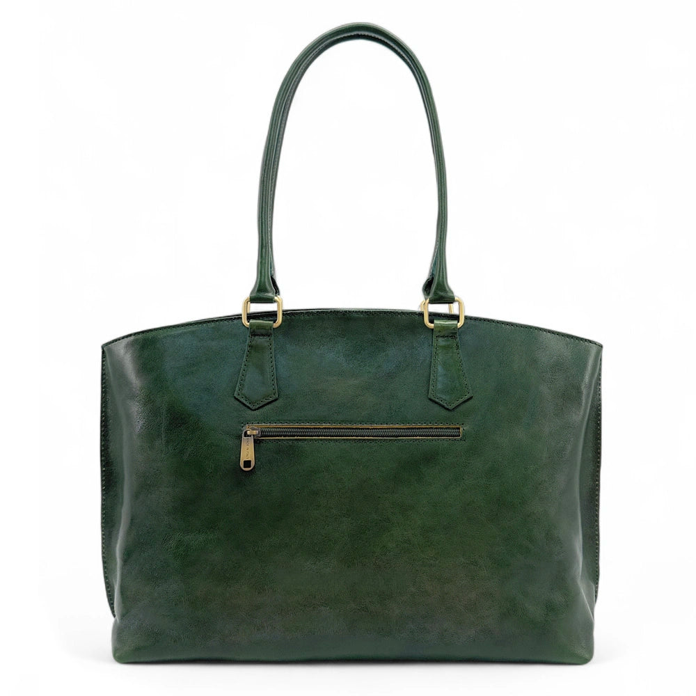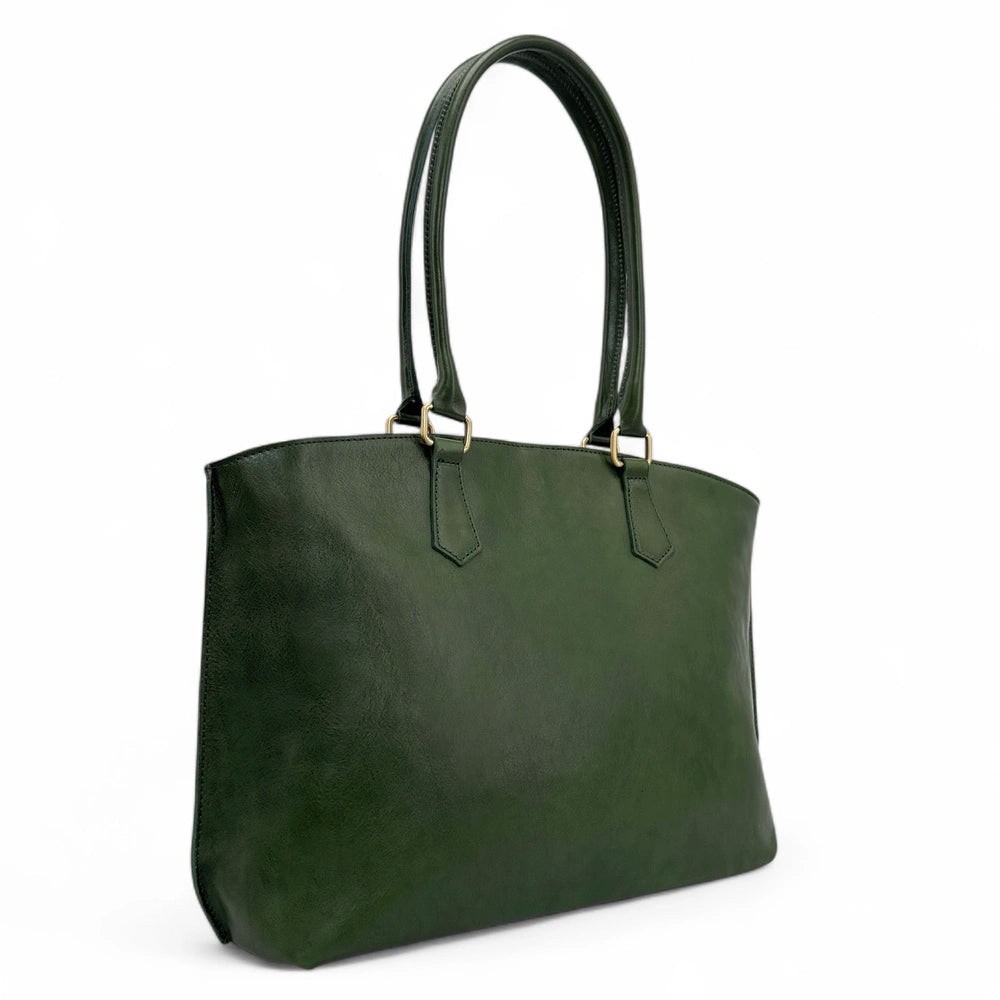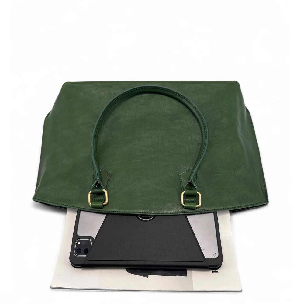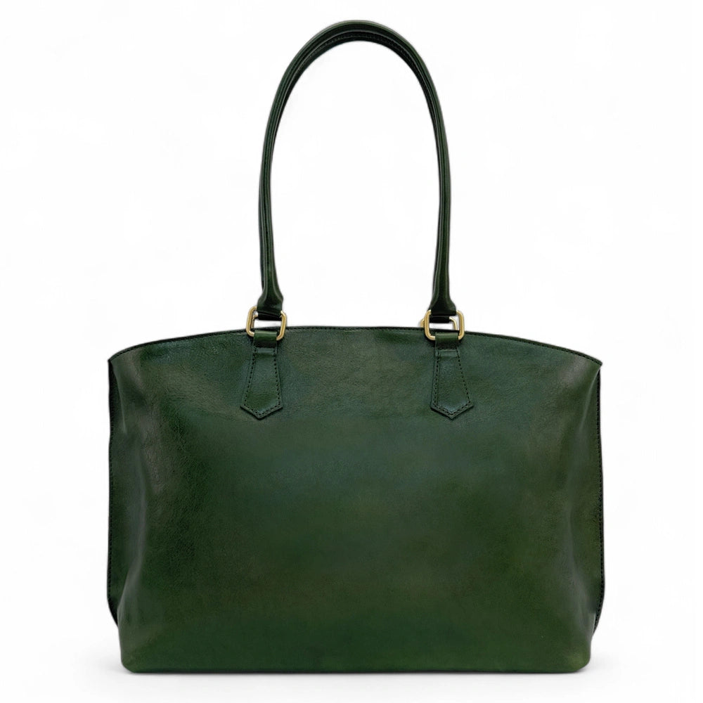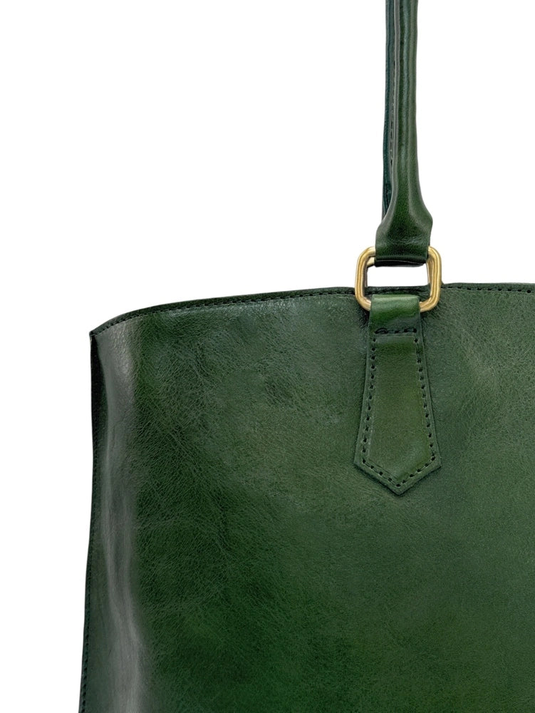 Grand sac cabas en cuir lisse GREENWICH Vert forêt