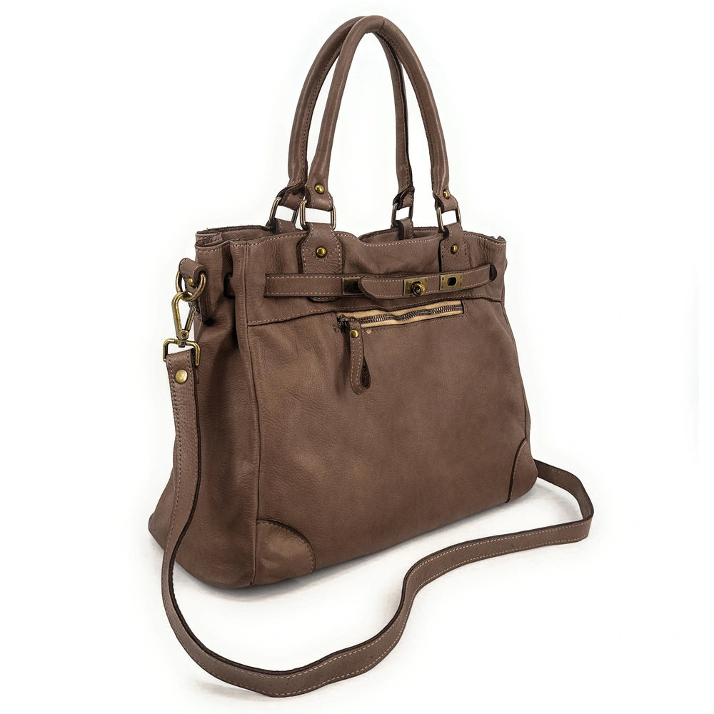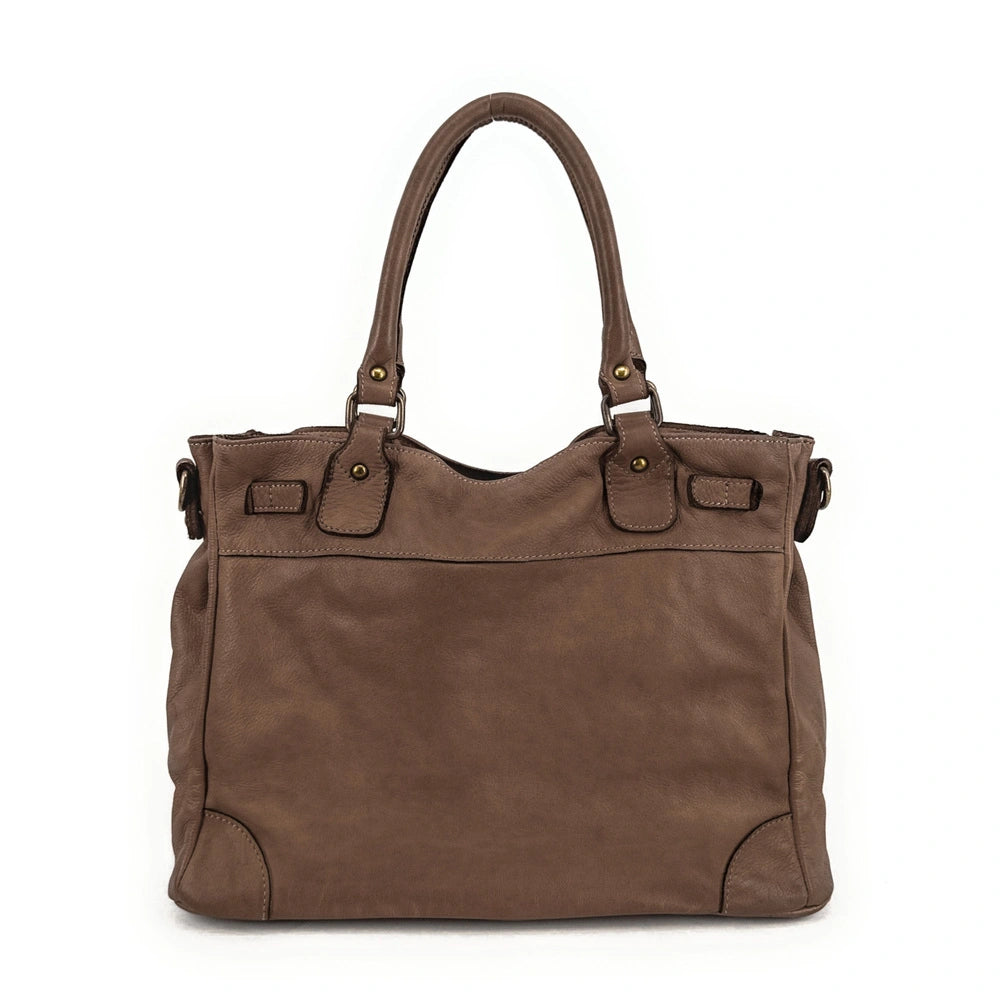 Sac à main cabas en cuir pleine fleur souple délavé porté main, épaule ou bandoulière, fabriqué en Italie.