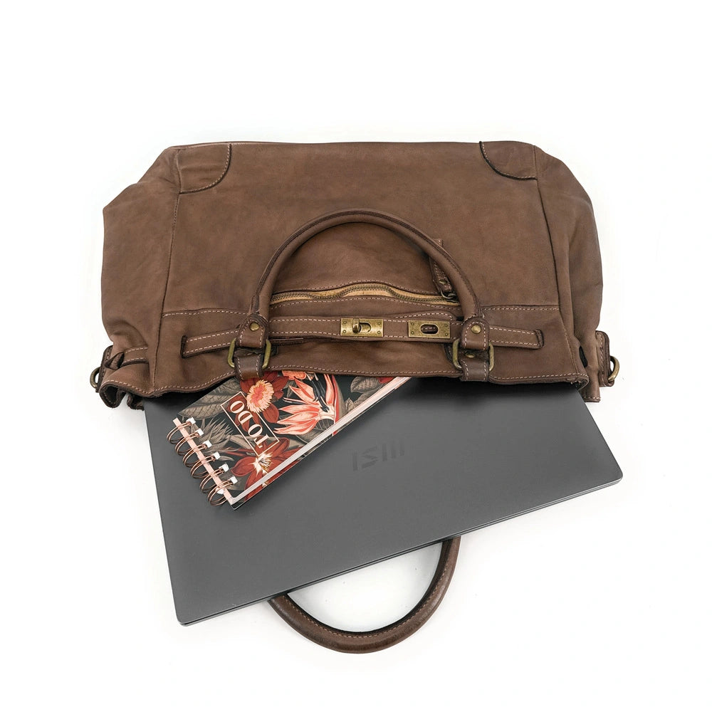 Sac cabas en cuir vintage MISS JEANNE Moka