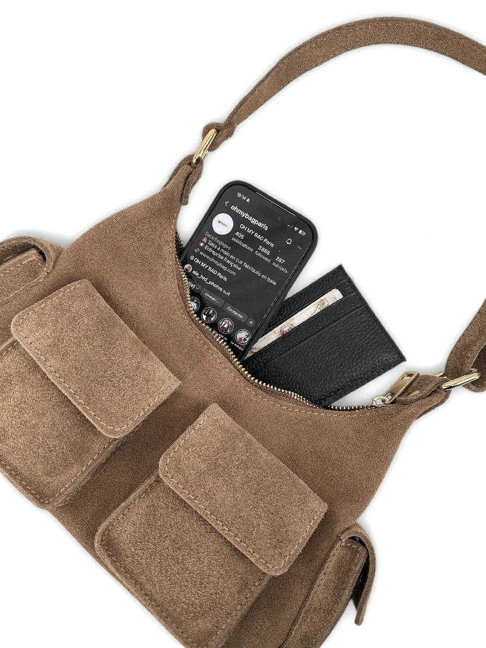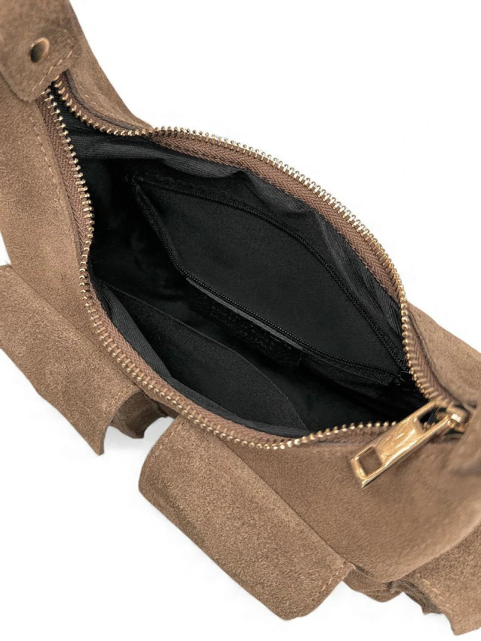 Sac cargo multipoches en daim LARA Taupe foncé