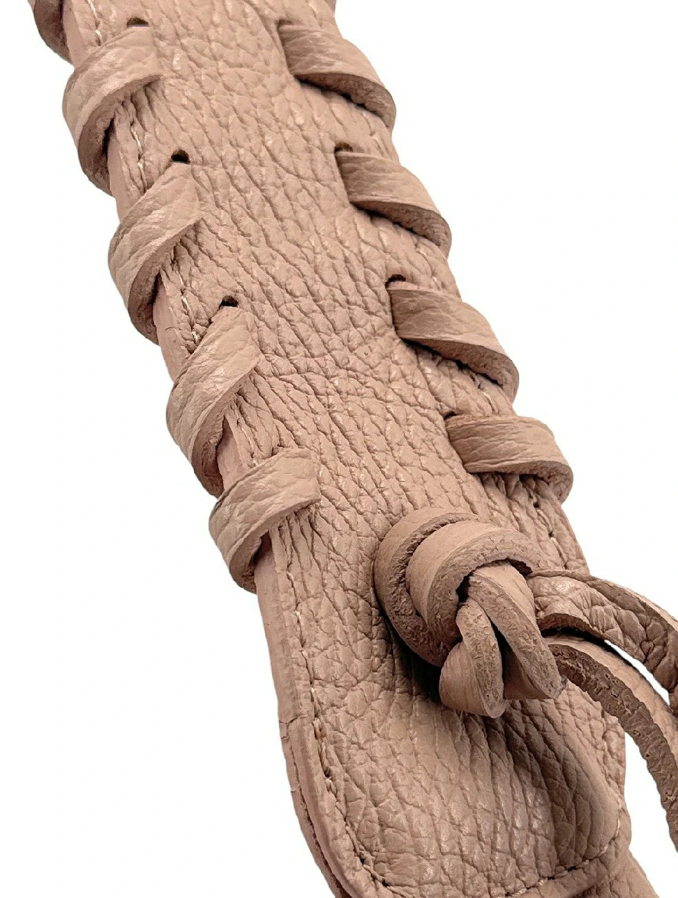 Douceur poudrée, éclat subtil : ce sac hobo en cuir rose nude réinvente la féminité moderne. Sa silhouette demi-lune, à la fois souple et affirmée, dévoile un design travaillé dans les moindres détails — mono-anse large et confortable, surpiqûres contrastées, lacets décoratifs en cuir qui tombent délicatement le long des côtés. Les finitions dorées et la bandoulière détachable en font un compagnon chic et modulable. Son format moyen accueille téléphone, portefeuille, lunettes, carnet, trousse beauté, sans jamais perdre en élégance. Véritable pièce de sélection tendance, il allie la grâce du cuir de qualité à l’audace du style preppy.