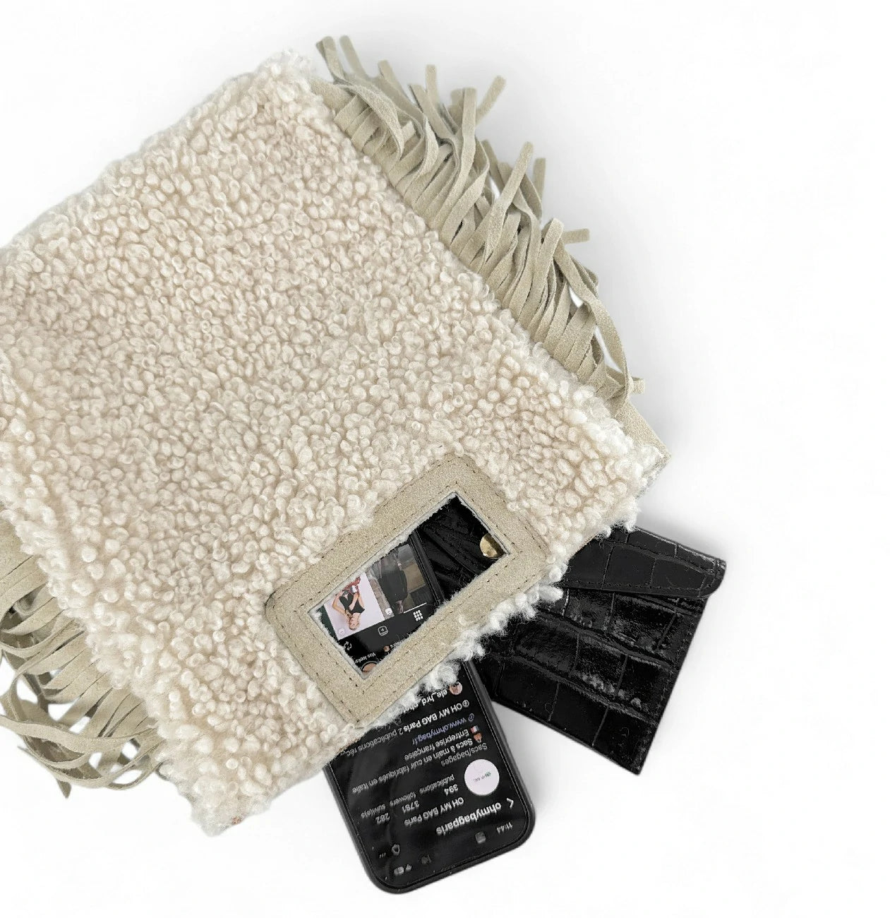 Sac messenger en daim et pilou ENOLA PILOU Beige crème