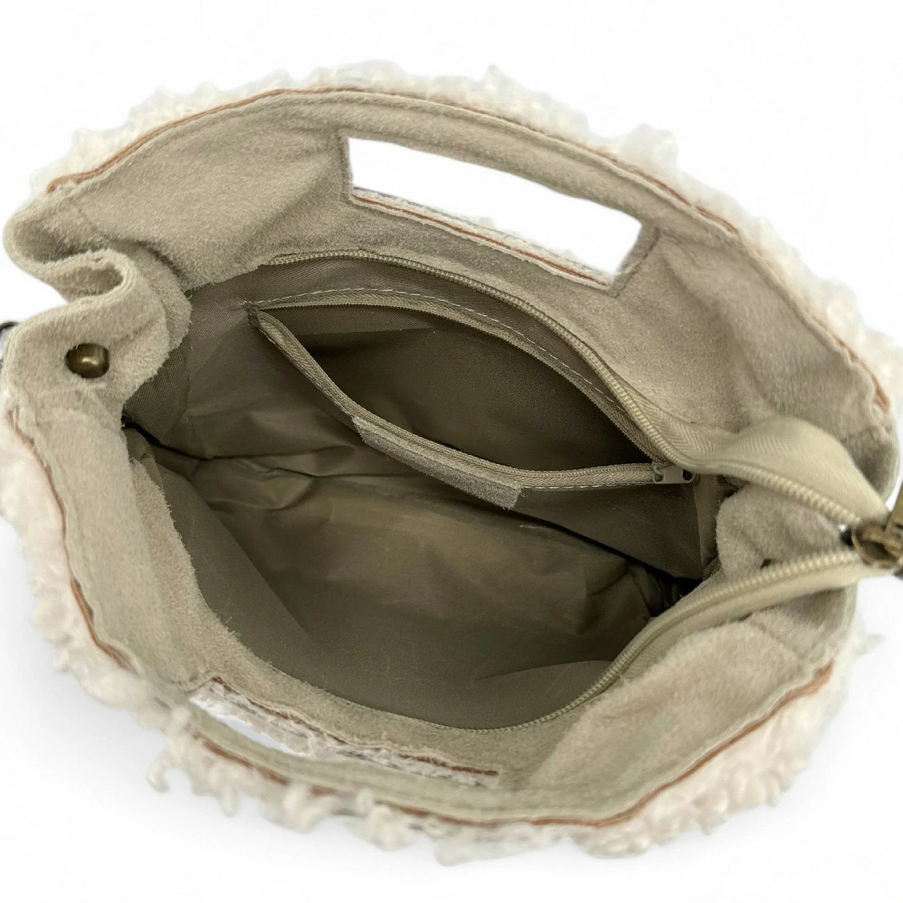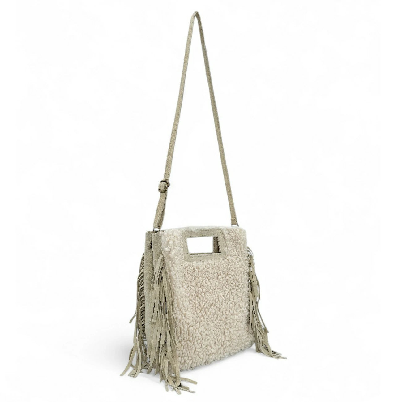 | Dénomination | Sac messenger en daim et pilou ENOLA PILOU Beige crème |
