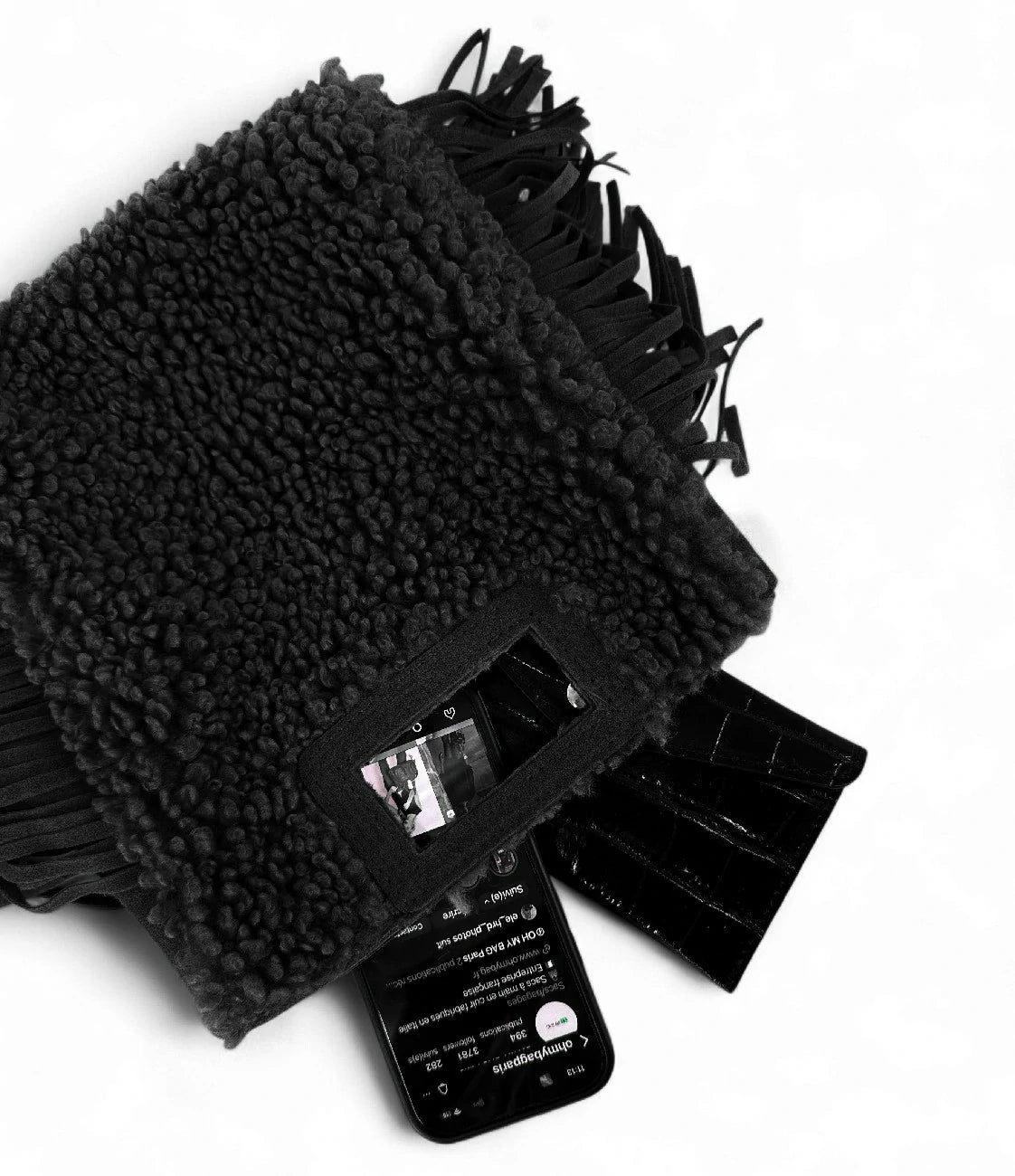 Sac messenger en daim et pilou ENOLA PILOU Noir