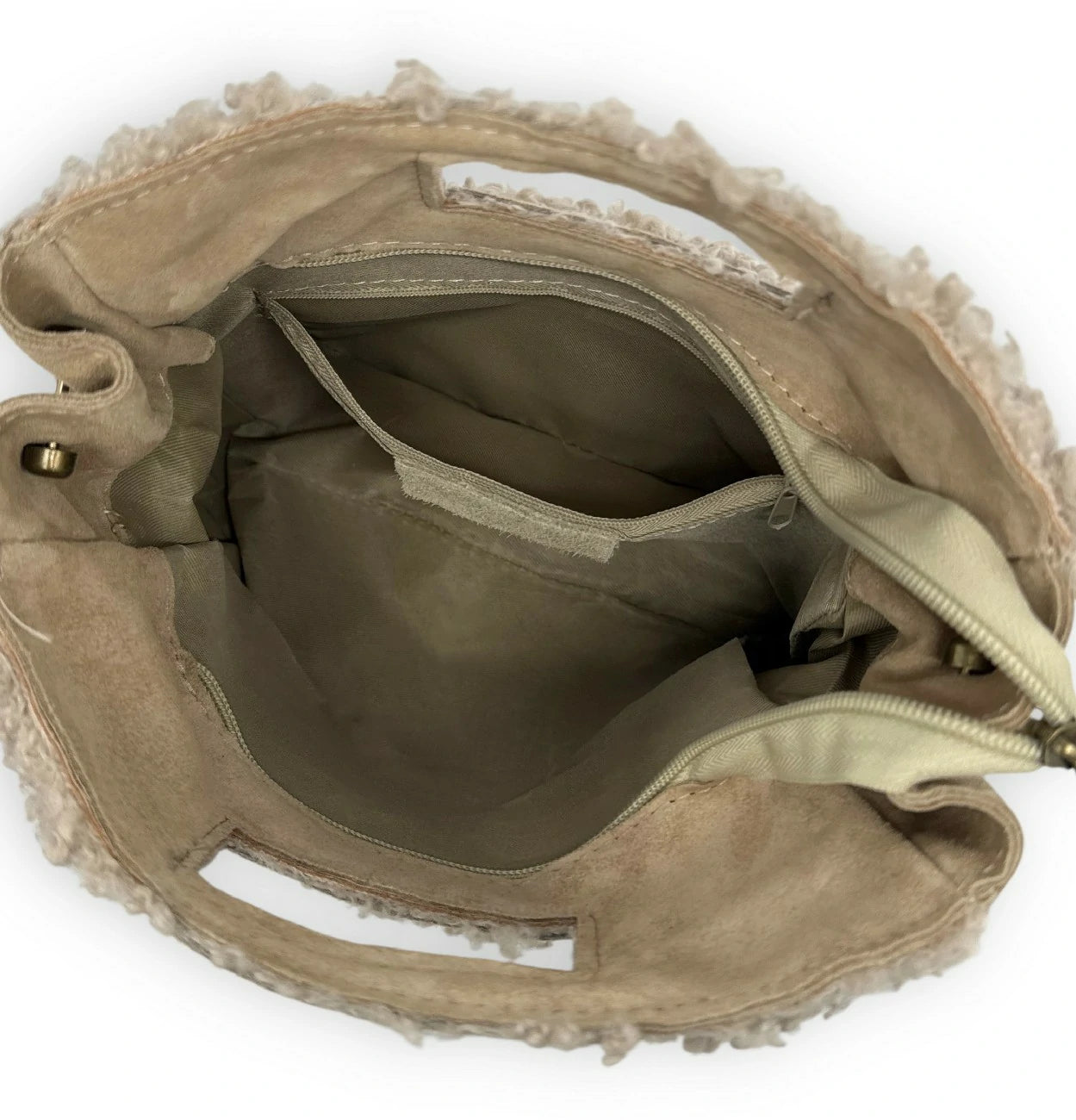 | Dénomination | Sac messenger en daim et pilou ENOLA PILOU Taupe |