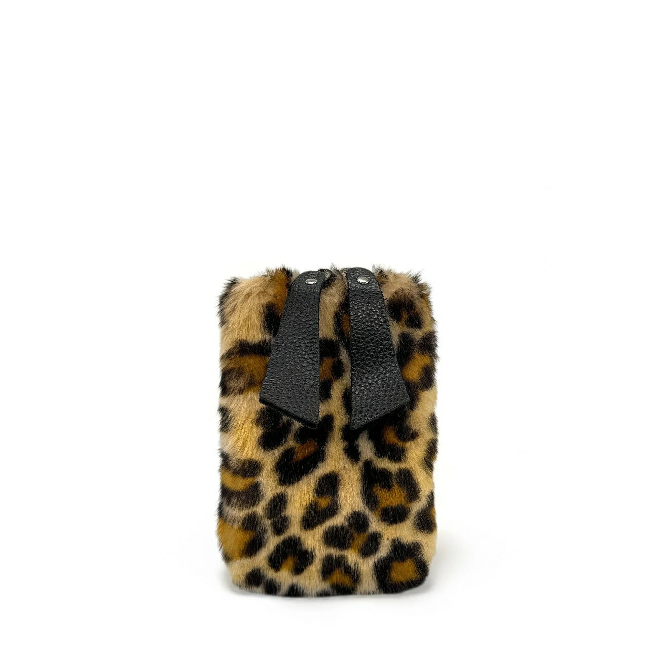 Sac pochette téléphone en cuir et poils synthétiques TABBY POCKET Léopard