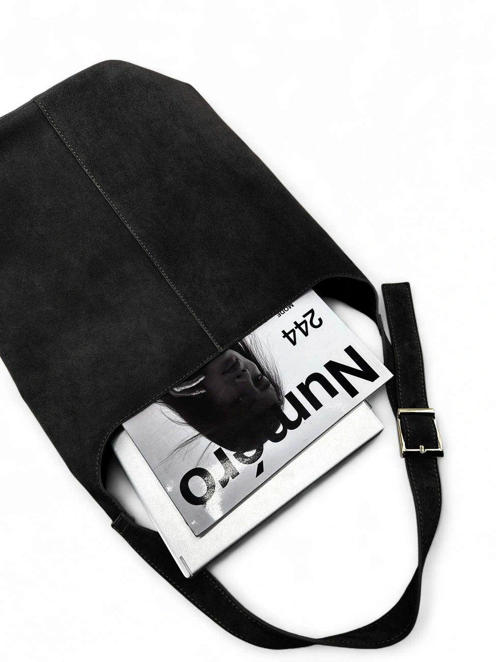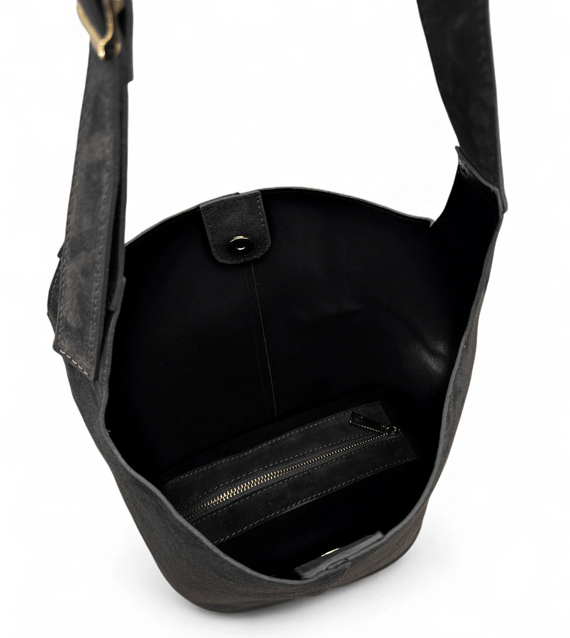 Dénomination | Sac seau en croûte de cuir CLARENCE Noir |